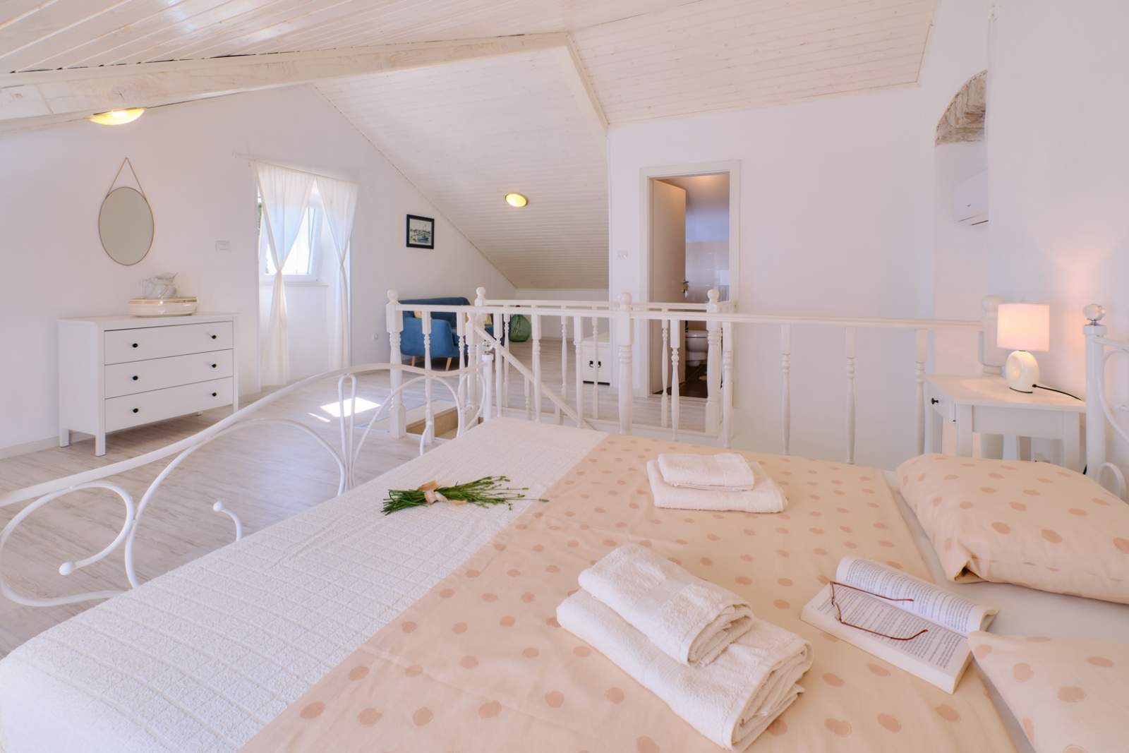 Das Country House in Ćunski ist ideal für Besucher, die Ruhe und Nähe zum Meer suchen, mit schnellem Zugang zu den schönsten Stränden der Insel. Die Buchten von Artatore mit den Stränden Lučica und Artatore liegen nur wenige Autominuten entfernt, ebenso wie der beliebte Strand Veli Žal. Die auf drei Etagen verteilte Ferienwohnung bietet Platz für bis zu sechs Personen und verfügt über zwei Schlafzimmer mit Doppelbetten sowie ein Zimmer mit zwei Einzelbetten. Ein stilvoll eingerichtetes Wohnzimmer, eine voll ausgestattete Küche und drei moderne Bäder sorgen für höchsten Komfort. Eine große Terrasse mit Grill und mediterranem Garten lädt zu entspannten Stunden im Freien ein. Mali Lošinj liegt 8 km entfernt; dort befindet sich an der Uferpromenade das berühmte Museum des Apoxyomenos, ein kultureller Höhepunkt der Insel. Ćunski bietet Ruhe, Wanderwege und lokale Restaurants, und in der Agentur Mediteran können Gäste Fahrräder und Motorroller mieten, um die Insel flexibel zu erkunden.