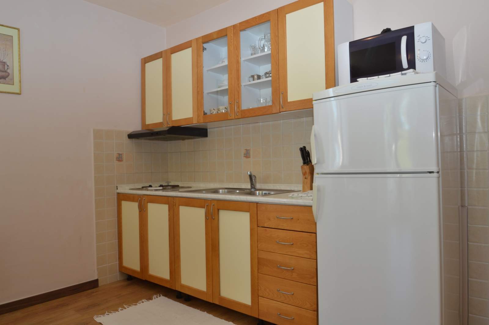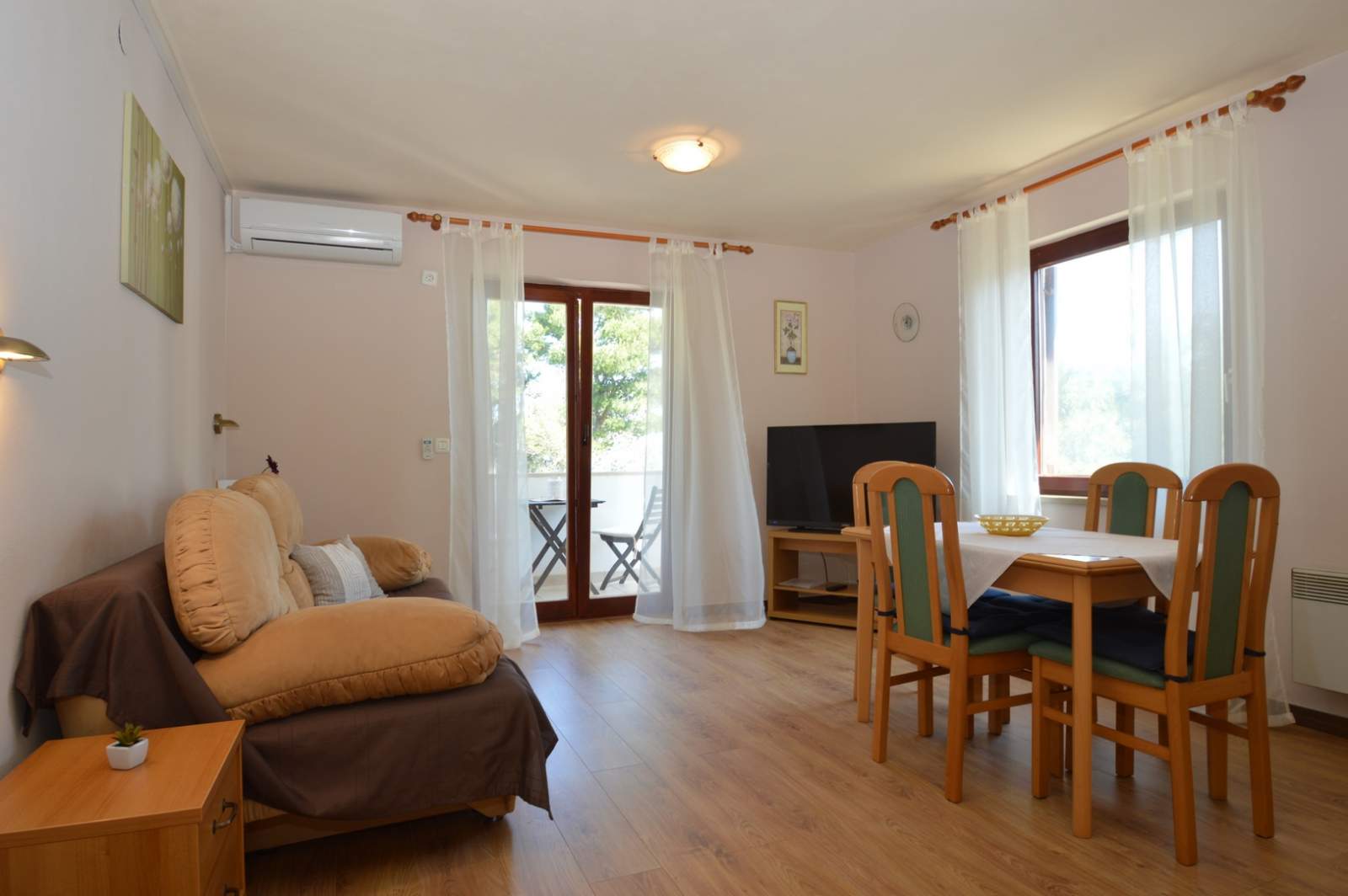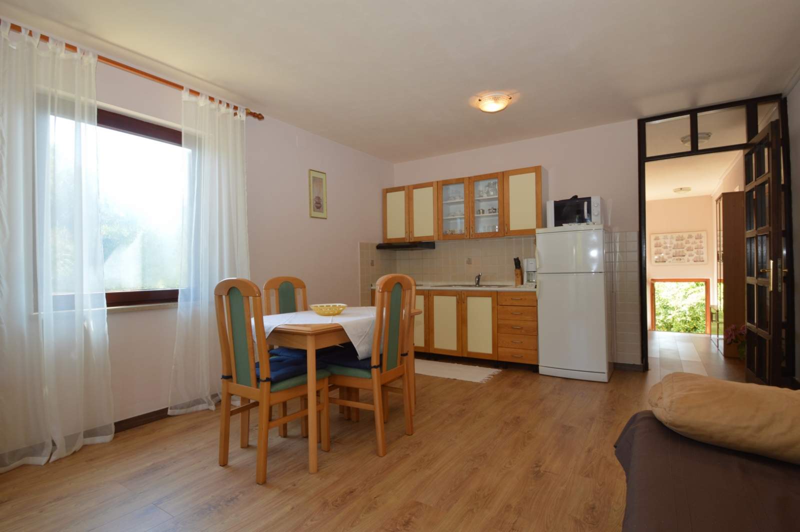 Die Ferienwohnung Kristina 1 befindet sich in einem ruhigen Teil von Mali Lošinj, nur 150 Meter vom Meer entfernt und in der Nähe der Strände Bojčić, Zagazinjine und Valdarke, die für ihr klares Wasser bekannt sind. Die Ferienwohnung bietet Platz für bis zu drei Personen und verfügt über ein Schlafzimmer mit Doppelbett sowie ein Schlafsofa im Wohnzimmer. Der Essbereich ist mit der voll ausgestatteten Küche verbunden, die Herd, Kühlschrank und Mikrowelle umfasst. Das Badezimmer bietet eine Dusche, eine Waschmaschine und alle wichtigen Utensilien. Die Terrasse mit Blick auf das Meer und den Wald lädt zum Entspannen ein, während ein privater Parkplatz zusätzlichen Komfort bietet. Das Zentrum von Mali Lošinj liegt nur 500 Meter entfernt; an der Uferpromenade befindet sich das bekannte Museum des Apoxyomenos, ein kulturelles Highlight der Insel. Zahlreiche Wander- und Radwege bieten sich für Erkundungen an, und in der Agentur Mediteran können Gäste Fahrräder und Motorroller mieten.