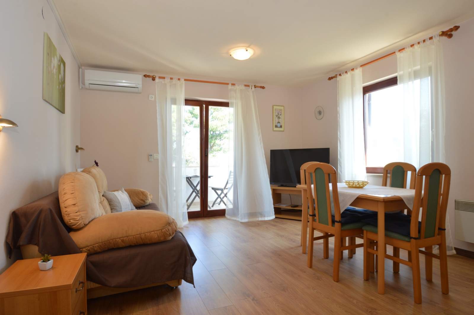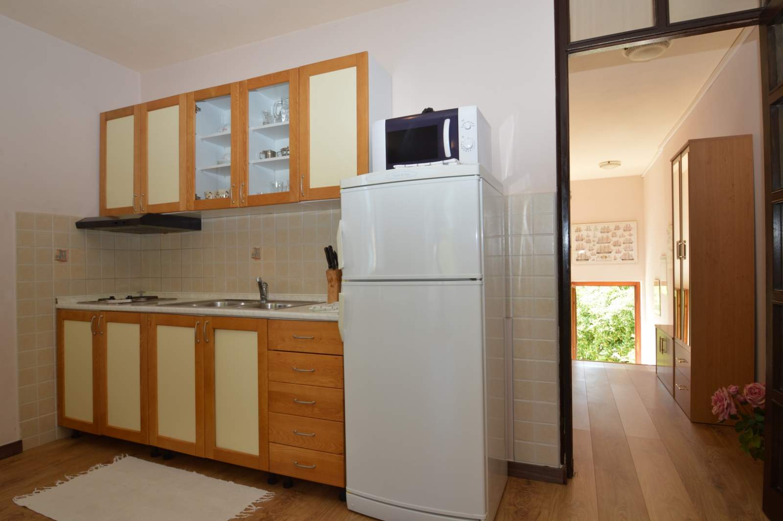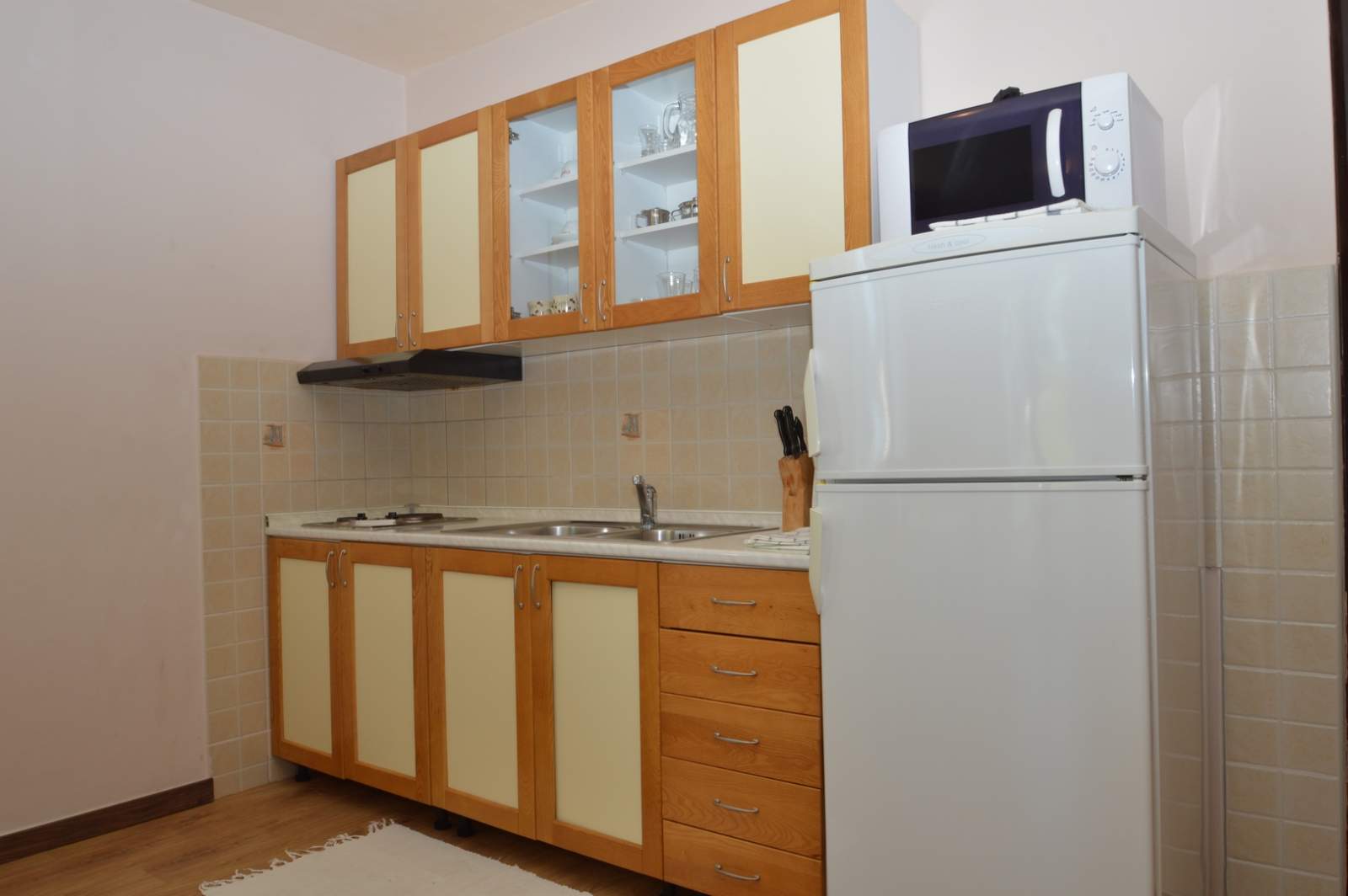Die Ferienwohnung Kristina 1 befindet sich in einem ruhigen Teil von Mali Lošinj, nur 150 Meter vom Meer entfernt und in der Nähe der Strände Bojčić, Zagazinjine und Valdarke, die für ihr klares Wasser bekannt sind. Die Ferienwohnung bietet Platz für bis zu drei Personen und verfügt über ein Schlafzimmer mit Doppelbett sowie ein Schlafsofa im Wohnzimmer. Der Essbereich ist mit der voll ausgestatteten Küche verbunden, die Herd, Kühlschrank und Mikrowelle umfasst. Das Badezimmer bietet eine Dusche, eine Waschmaschine und alle wichtigen Utensilien. Die Terrasse mit Blick auf das Meer und den Wald lädt zum Entspannen ein, während ein privater Parkplatz zusätzlichen Komfort bietet. Das Zentrum von Mali Lošinj liegt nur 500 Meter entfernt; an der Uferpromenade befindet sich das bekannte Museum des Apoxyomenos, ein kulturelles Highlight der Insel. Zahlreiche Wander- und Radwege bieten sich für Erkundungen an, und in der Agentur Mediteran können Gäste Fahrräder und Motorroller mieten.
