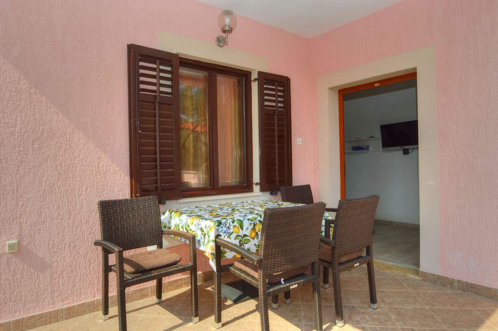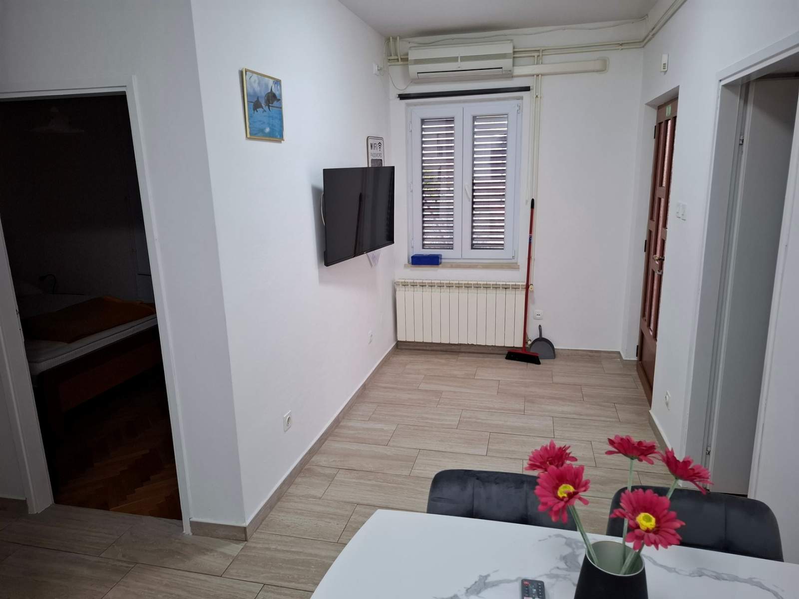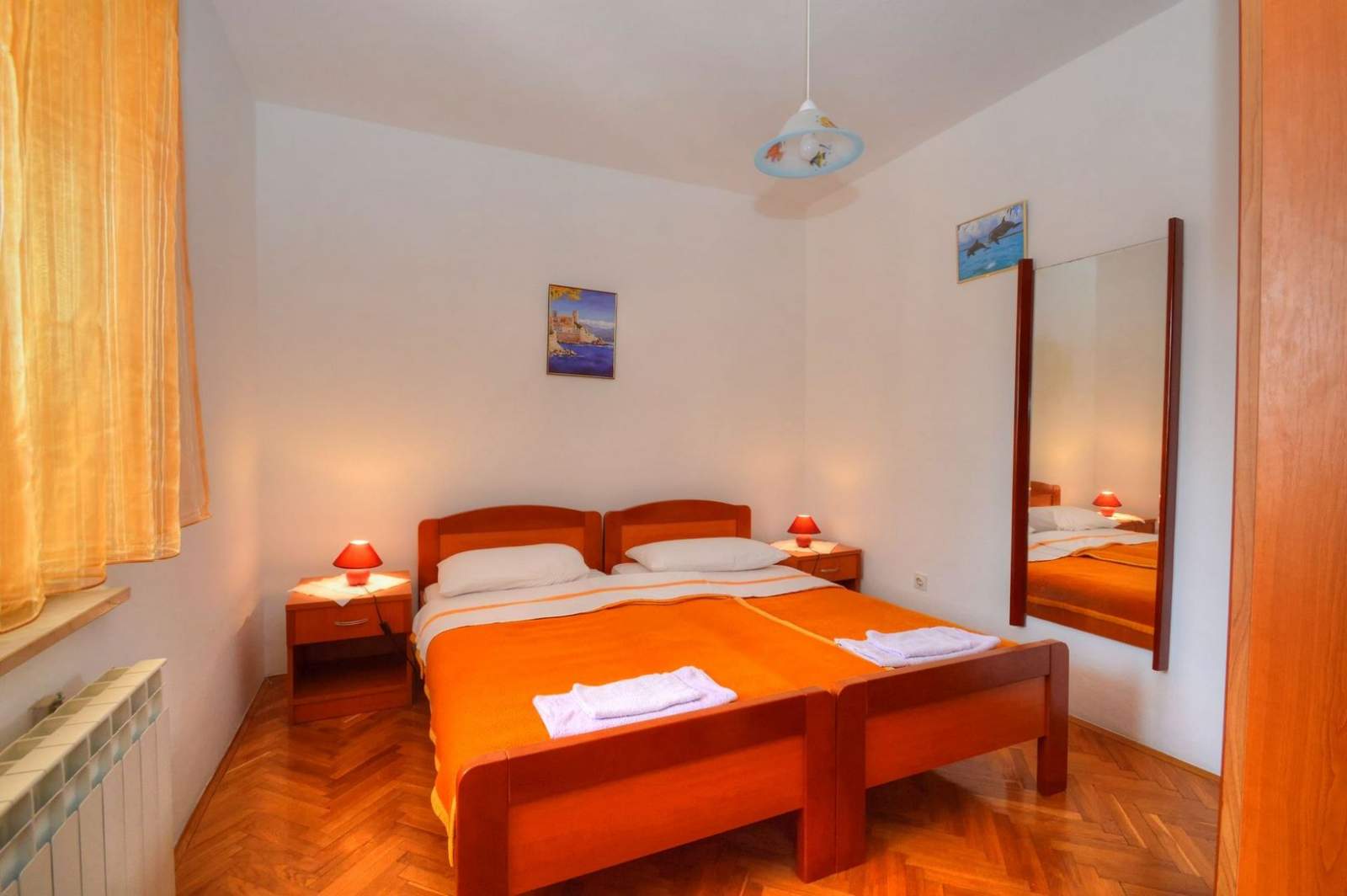 Die Ferienwohnung Marta 2 bietet einen großzügigen, modern ausgestatteten Innenraum und ist ideal für Familien oder Freundesgruppen. Sie umfasst zwei Schlafzimmer mit bequemen Doppelbetten und hochwertiger Bettwäsche sowie eine voll ausgestattete Küche mit Kühlschrank, Herd, Backofen, Mikrowelle und Wasserkocher. Das Badezimmer verfügt über eine Dusche, Waschmaschine und grundlegende Toilettenartikel. Klimaanlage und kostenloses WLAN sorgen für zusätzlichen Komfort. Im Außenbereich steht eine private Terrasse für Mahlzeiten oder Entspannung bereit, und das Meer ist nur 180 Meter entfernt. In der Nähe befinden sich die Strände Zagazinjine, Čikat und Bojčić, bekannt für ihr klares Wasser. Das Museum des Apoxyomenos an der Uferpromenade ist ein kulturelles Highlight. Die Umgebung bietet Restaurants, Geschäfte, Radwege und zahlreiche Aktivitäten. Fahrräder und Motorroller können bei der Agentur Mediteran gemietet werden – Informationen unter rent a bike und rent a scooter.