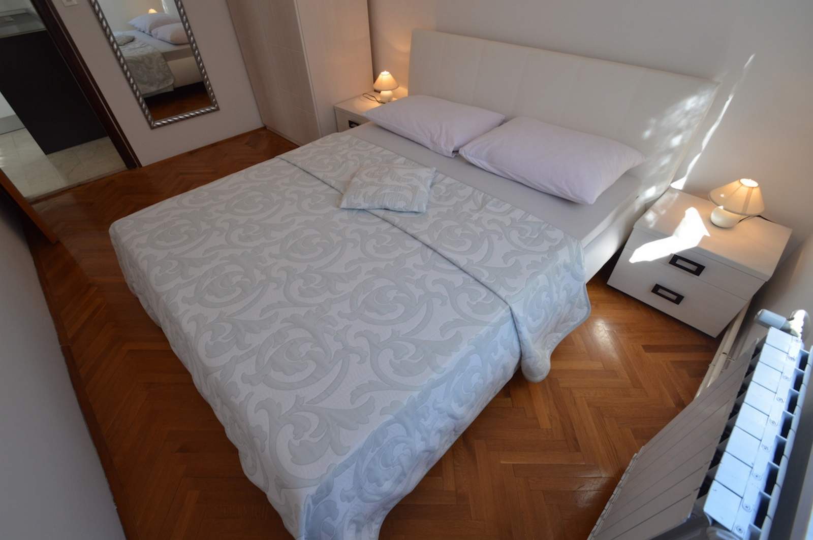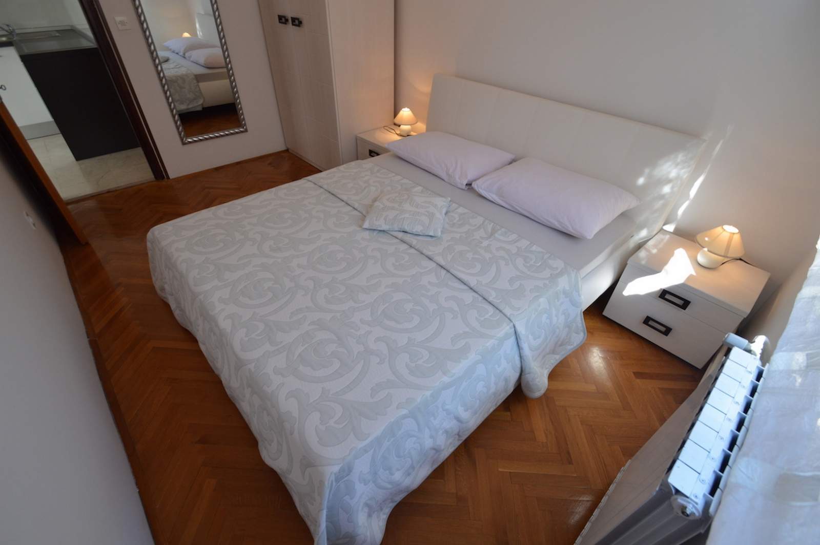 Die Wohnung Milica 3, die sich im Erdgeschoss befindet, ist ideal für bis zu drei Personen. Der Innenbereich der Wohnung ist auf Komfort und Funktionalität ausgelegt, mit hochwertiger moderner Möbeln. Sie besteht aus einem geräumigen Schlafzimmer mit Doppelbett, einem Wohnzimmer und einer Küche mit Essbereich. Die Küche ist mit einem Elektroherd, einem Ofen und einem Kühlschrank ausgestattet. Die Wohnung ist klimatisiert, sodass eine angenehme Temperatur das ganze Jahr über gewährleistet ist. Außerdem stehen ein Fernseher und kostenloses WLAN zur Verfügung, was den Aufenthalt bequem und praktisch macht.