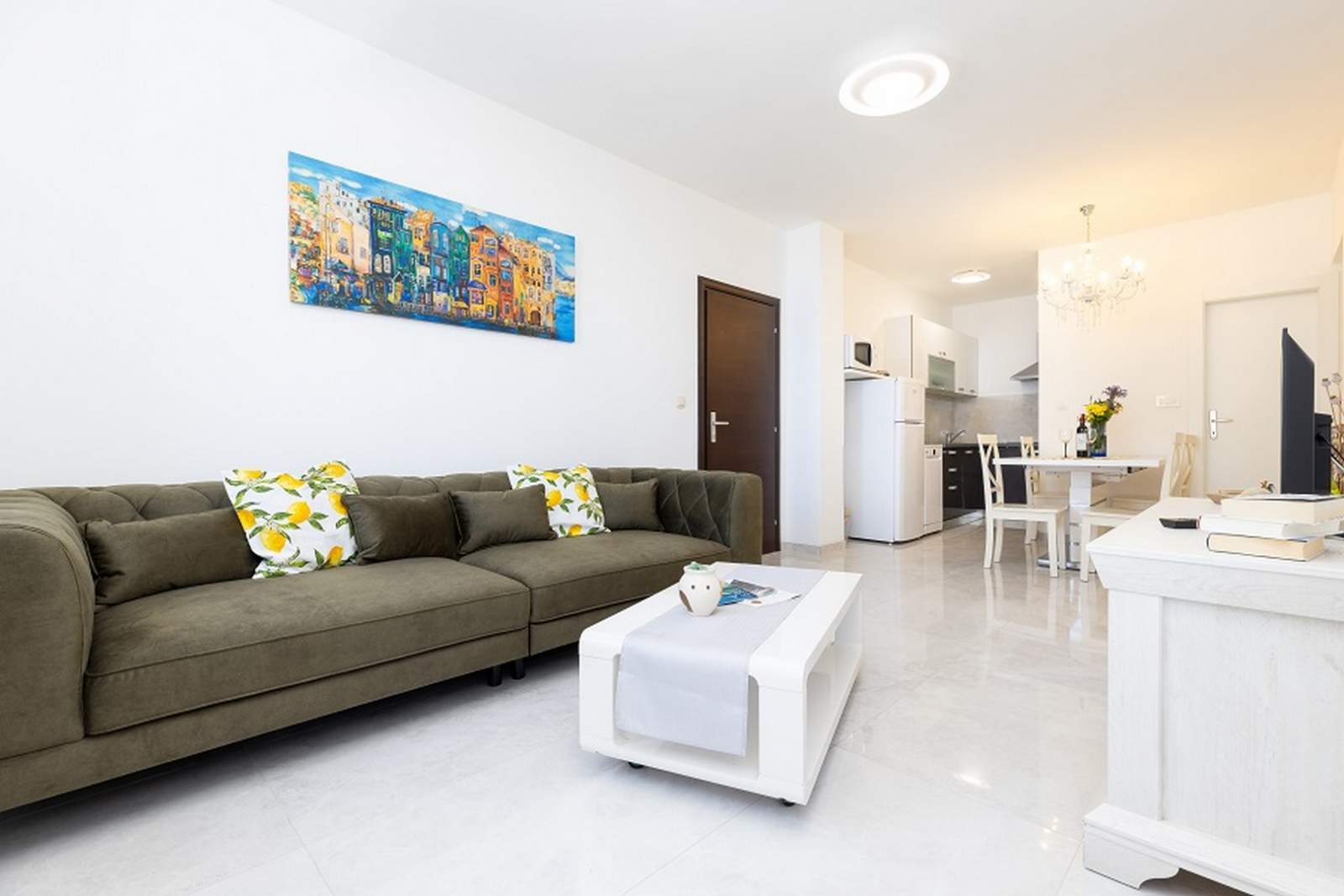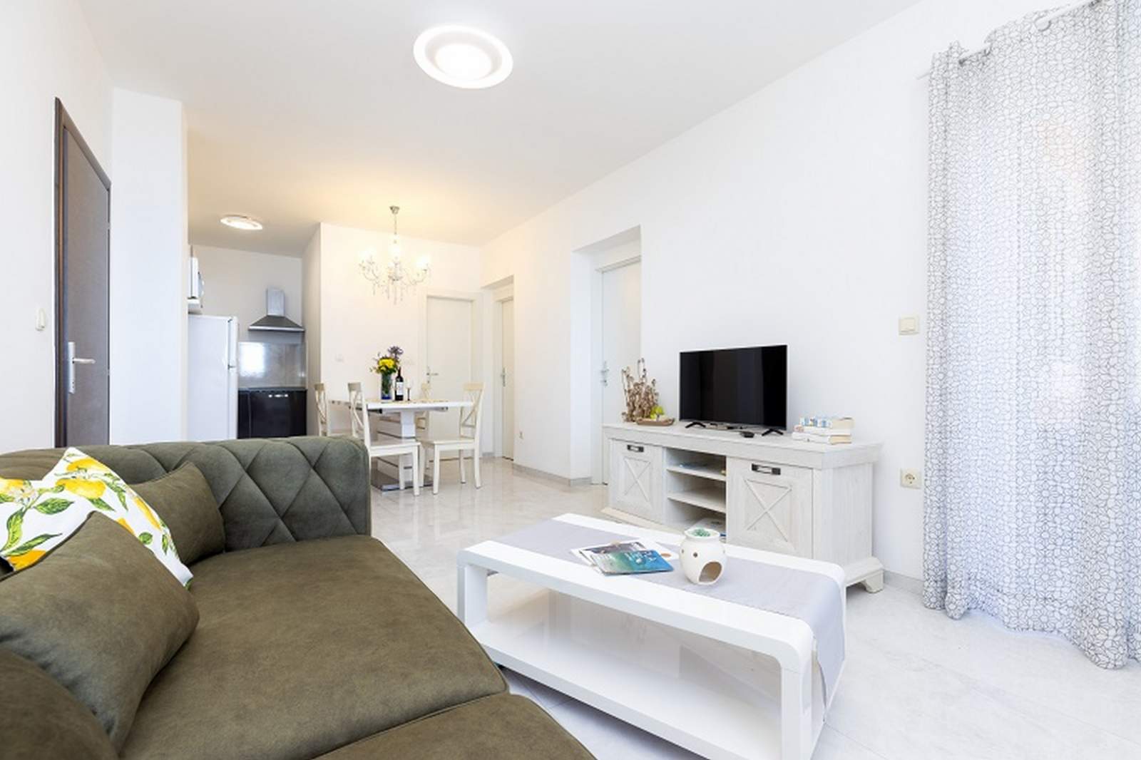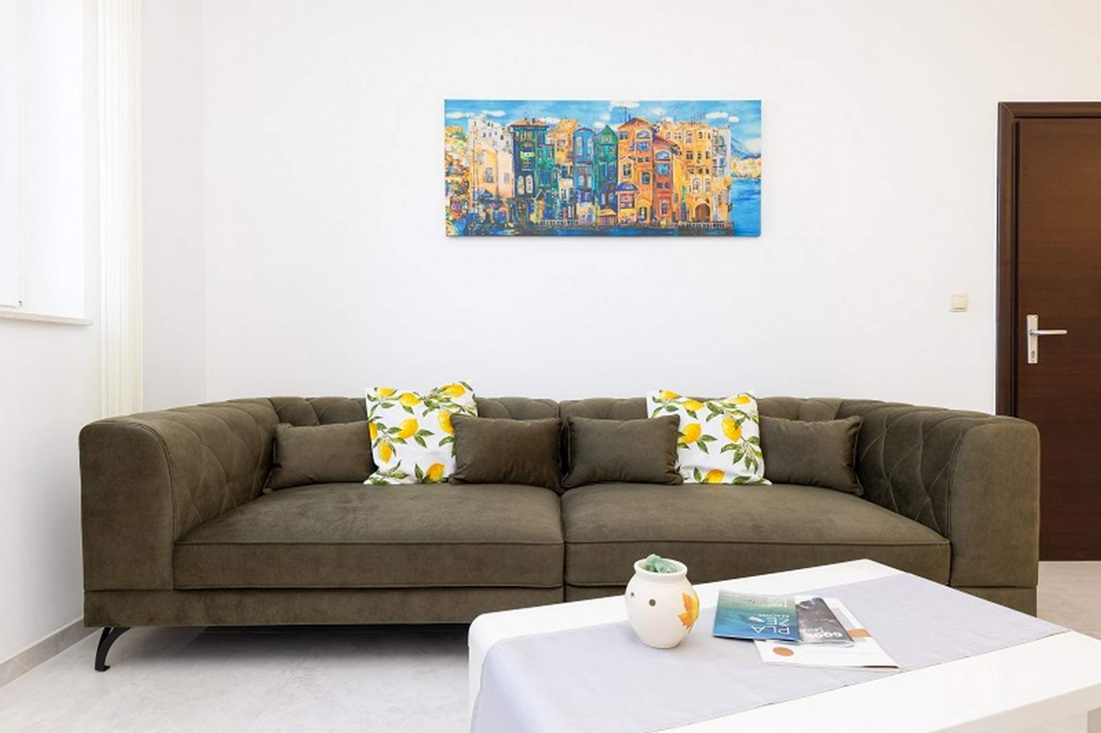 Die Ferienwohnung Orangina 2 befindet sich im ruhigen Viertel Zagazinjine, nur 100 Meter vom Meer und nahe der beliebten Strände Zagazinjine, Sv. Martin und Bojčić. Die Ferienwohnung im ersten Stock bietet Platz für bis zu vier Personen und verfügt über zwei Schlafzimmer mit Doppelbetten sowie einen gemütlichen Wohnbereich, der mit einer modernen Küche verbunden ist. Diese ist ausgestattet mit Kühlschrank, Herd, Mikrowelle, Kaffeemaschine und Wasserkocher. Vom Balkon aus genießt man einen herrlichen Meerblick. Ganz in der Nähe liegt auch das Museum des Apoxyomenos, das direkt an der Uferpromenade im Zentrum von Mali Lošinj zu finden ist. Die Umgebung eignet sich hervorragend zum Spazieren, Radfahren und Erkunden der Natur. In der Agentur Mediteran können Fahrräder und Motorroller gemietet werden, um die Insel flexibel zu entdecken.