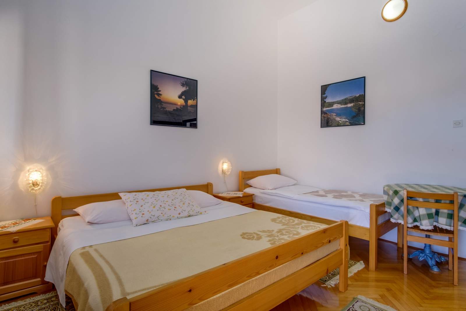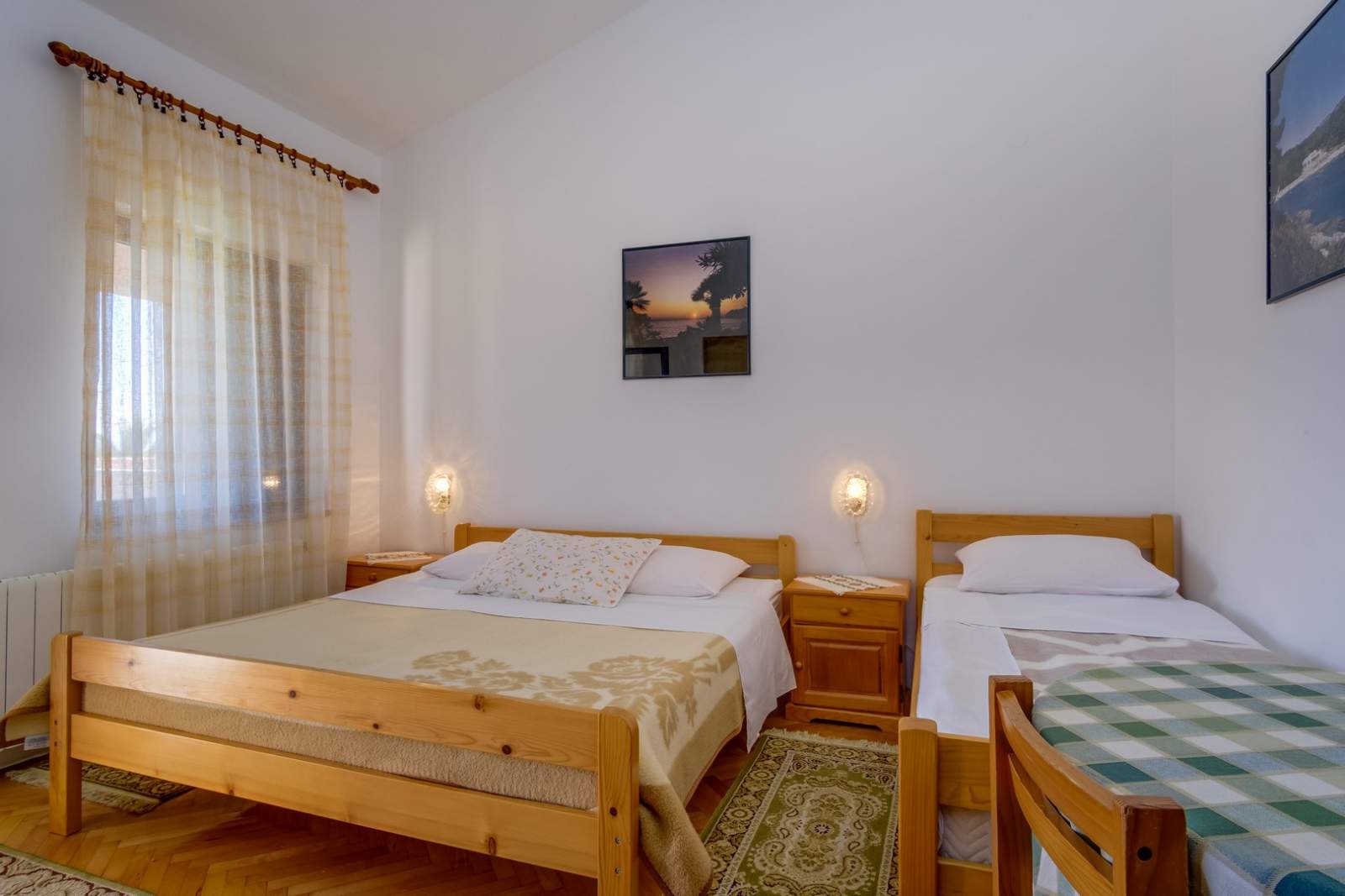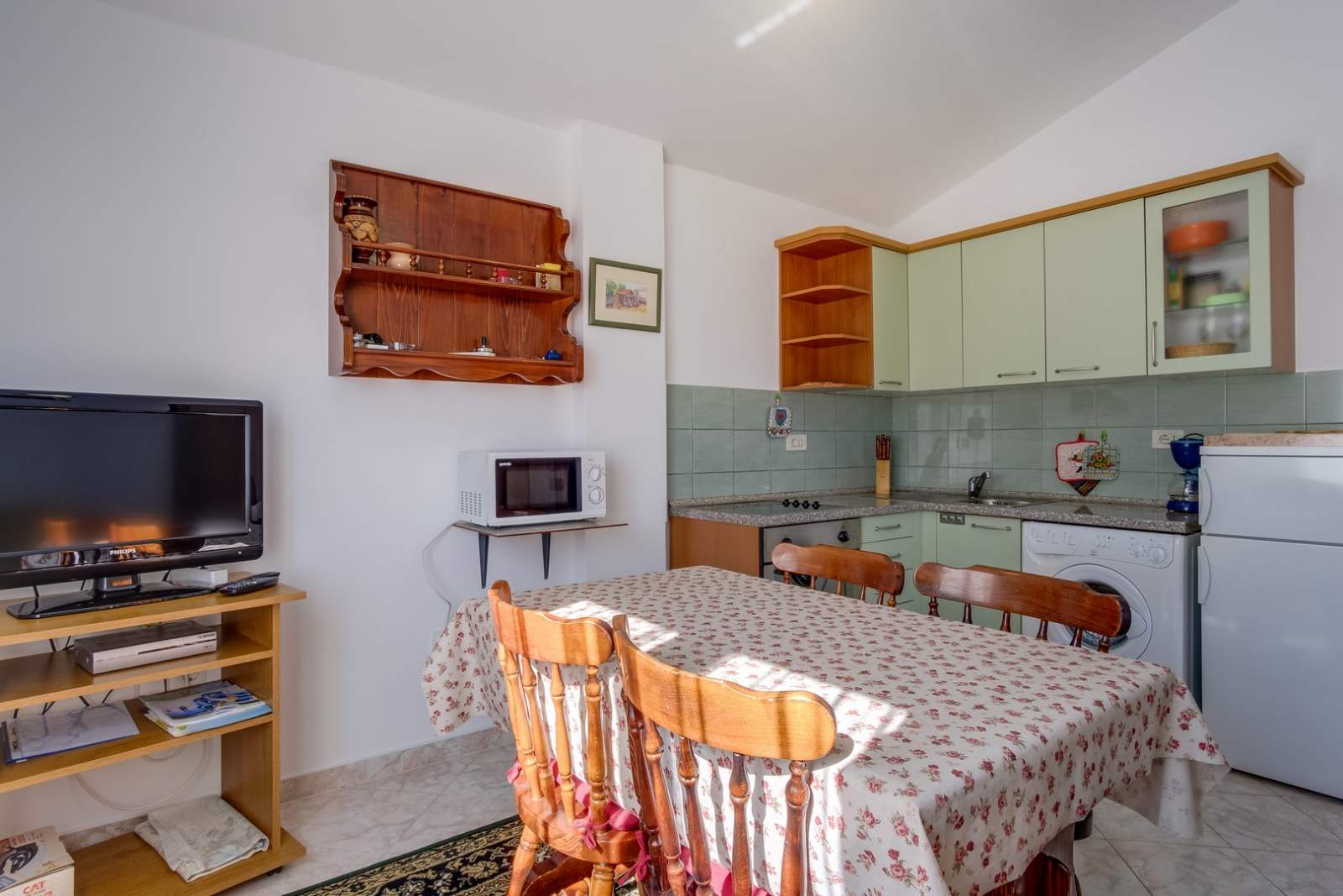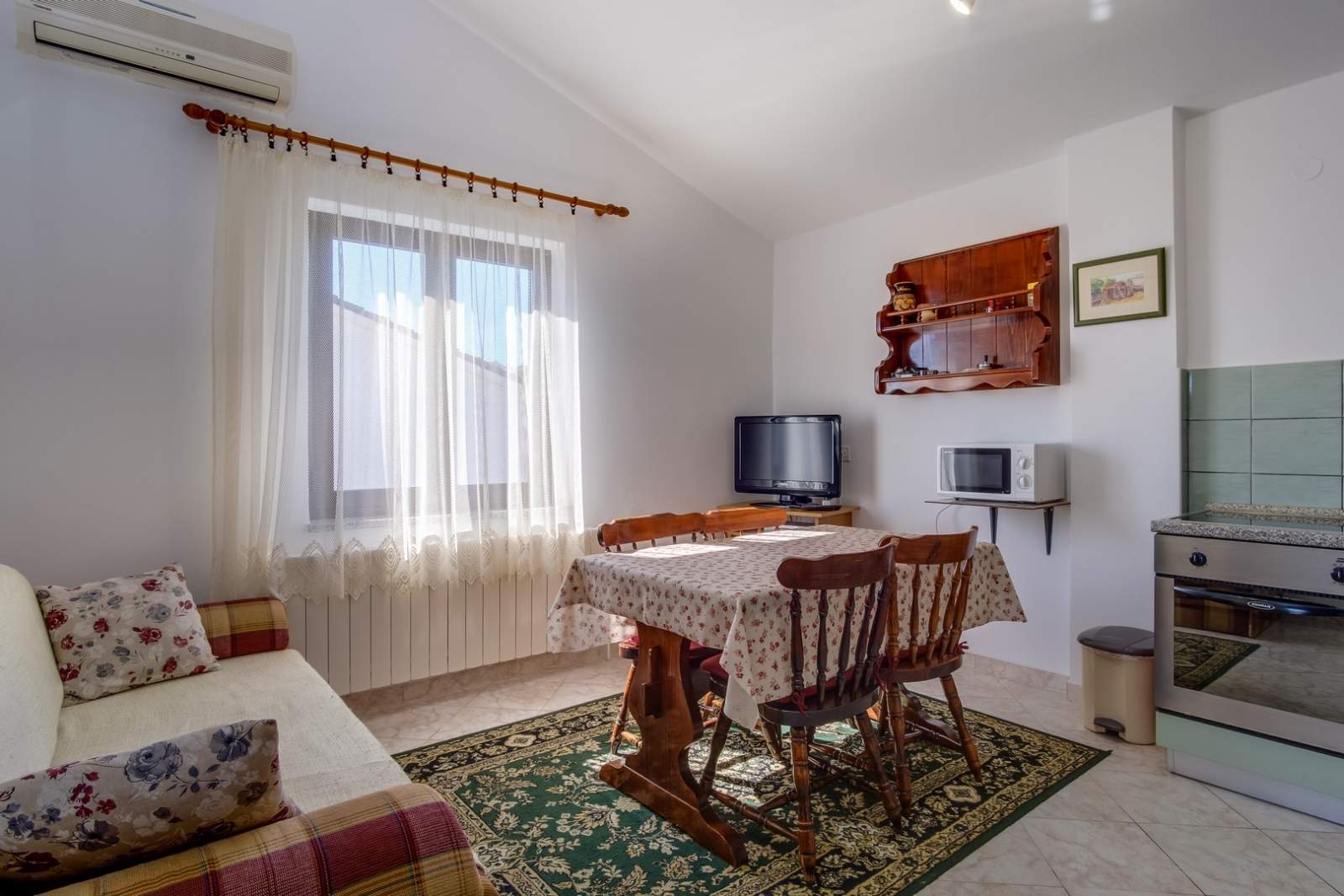 Apartment Abba 1 is located in the quiet Zagazinjine area of Mali Lošinj and is ideal for 2–3 guests. Situated on the first floor, it features a spacious living room with a dining area and LED TV. The fully equipped kitchen includes a refrigerator, stove, oven, microwave and coffee machine. The bedroom offers a double bed and an additional single bed, while the bathroom with shower provides comfort and practicality. A terrace surrounded by greenery is perfect for relaxing moments. Nearby beaches include Zagazinjine, Kadin, Bojčić and Sunčana Uvala, all known for crystal-clear water. The town center is about a ten-minute walk away and is home to the famous Museum of Apoxyomenos located by the harbor. Guests can explore the island actively, and bicycles or scooters can be rented through the Mediteran agency at Rent a Bike Lošinj and Rent a Scooter Lošinj.