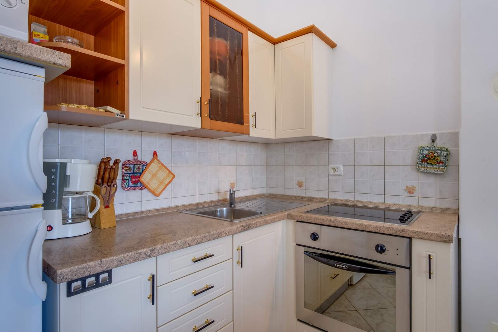 Apartment Abba 2 is located in the peaceful Zagazinjine area of Mali Lošinj and comfortably accommodates up to four guests. The spacious, modern interior features two cozy bedrooms, a living area with dining table and a fully equipped kitchen including a refrigerator, stove, microwave and coffee machine. Air conditioning and free Wi-Fi ensure a pleasant stay. A private terrace surrounded by greenery offers a relaxing outdoor space, while private parking adds convenience. Nearby beaches include Zagazinjine, Bojčić, Sunčana Uvala and Čikat, all known for clear waters and scenic surroundings. The town center is only 450 meters away and is home to the famous Museum of Apoxyomenos located by the harbor. Guests can enjoy walking, cycling and exploring the island. Bicycles and scooters can be rented through the Mediteran agency at Rent a Bike Lošinj and Rent a Scooter Lošinj.
