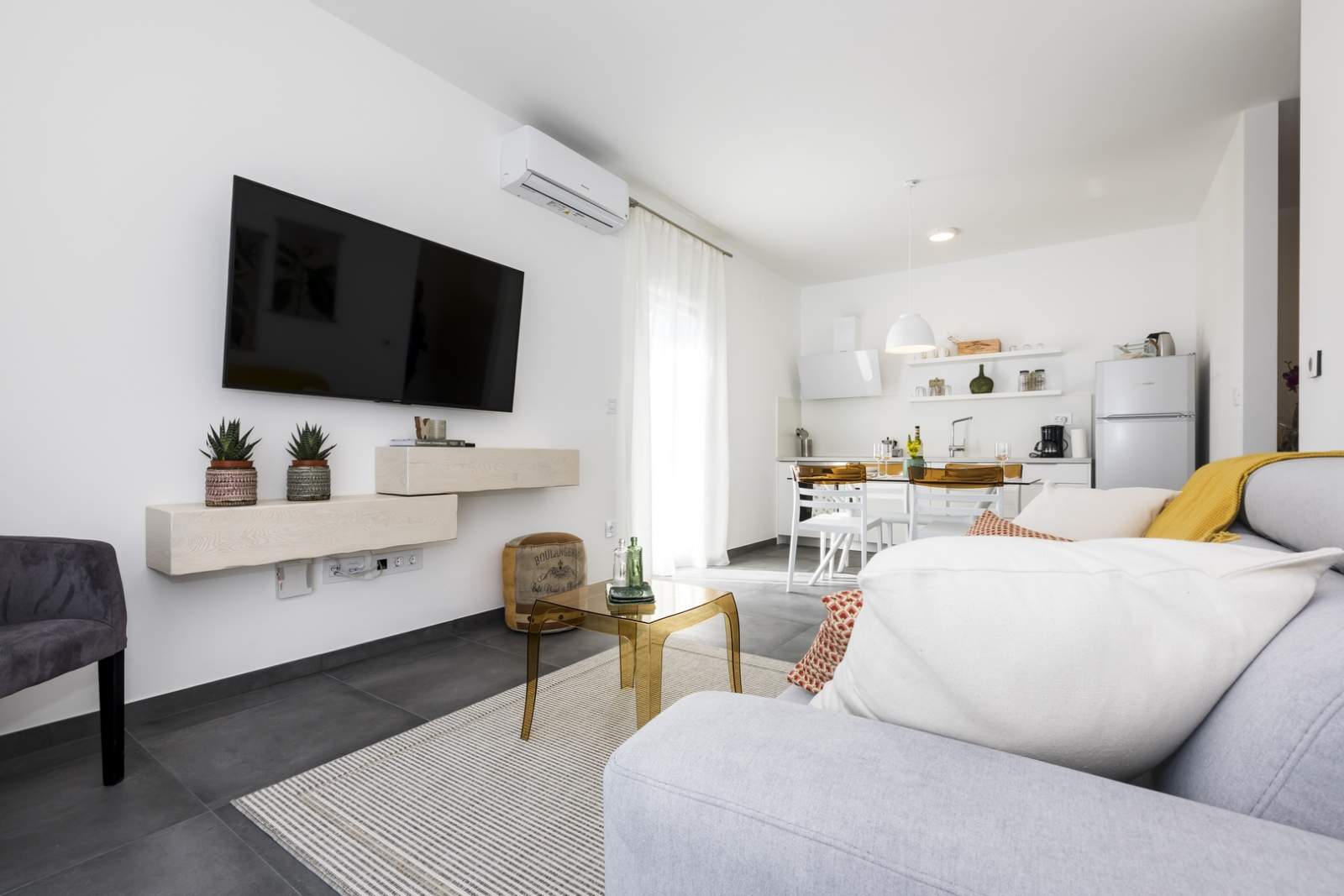 - A/C in the living room