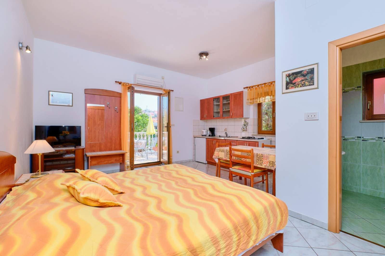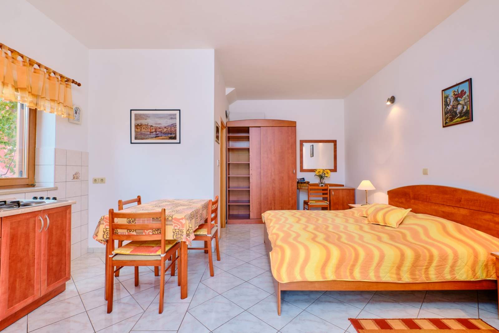 Apartment Antonela 1 offers a charming and comfortable 28 m² space ideal for two guests. The interior includes a bedroom with a cozy double bed, a modern living area and a functional kitchen equipped with a stove, fridge and coffee maker. The bathroom features a shower and essential toiletries, while air conditioning, free WiFi and a flat-screen TV ensure a pleasant stay. A sunny terrace surrounded by greenery provides a peaceful spot to relax. The apartment is just a few minutes’ walk from Čikat Beach, famous for its crystal-clear sea and pine forest, as well as near Veli žal and Zagazinjine beaches. The Museum of Apoxyomenos, located on the town’s waterfront, is a must-see cultural landmark. Nearby are restaurants, shops and scenic walking and cycling routes. At the Mediteran agency, guests can rent bicycles and scooters – more details available via rent a bike and rent a scooter.