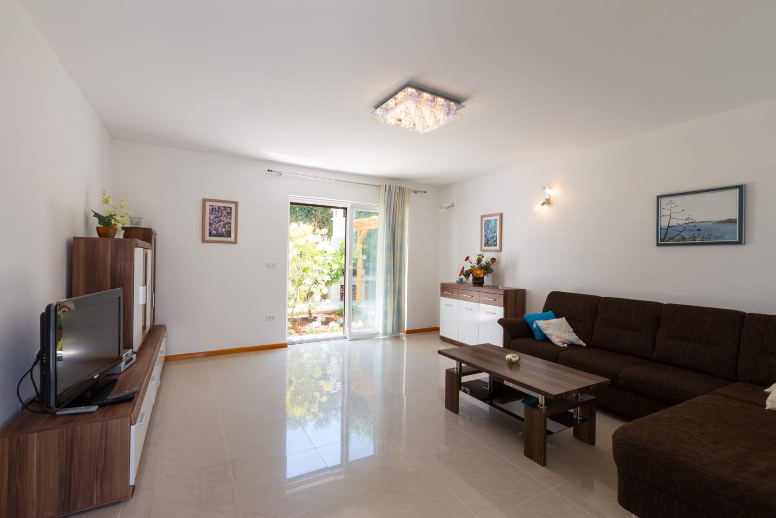 Apartment Bianca 2 is located in a quiet area of Mali Lošinj, making it ideal for families or small groups. The modern interior features a living room with a comfortable sofa and TV, as well as a fully equipped kitchen including a stove, refrigerator, microwave and dishwasher. The bathroom offers a shower and essential toiletries, while air conditioning and free WiFi add extra convenience. The private terrace surrounded by greenery creates a peaceful outdoor retreat, and private parking is available in front of the apartment. The location is excellent—only 500 m from Bojčić Beach and within easy reach of Zagazinjine and Čikat beaches. The Museum of Apoxyomenos, located on the town’s waterfront, is a must-see cultural highlight. The area offers restaurants, shops, walking paths and cycling routes. At the Mediteran agency, guests can rent bicycles and scooters for easier island exploration – details via rent a bike and rent a scooter.