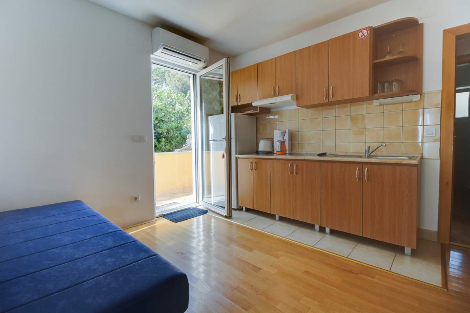 The exterior of Apartment Bogdan 3 offers a peaceful atmosphere, with private parking and well-maintained outdoor spaces. Guests can enjoy the tranquility of the pine forest and the intimacy of the space. The outdoor area is perfectly arranged for enjoying nature, and spending time outside allows for relaxation with views of the natural beauty of Lošinj. The apartment offers privacy and comfort, providing everything needed for a peaceful and pleasant stay.