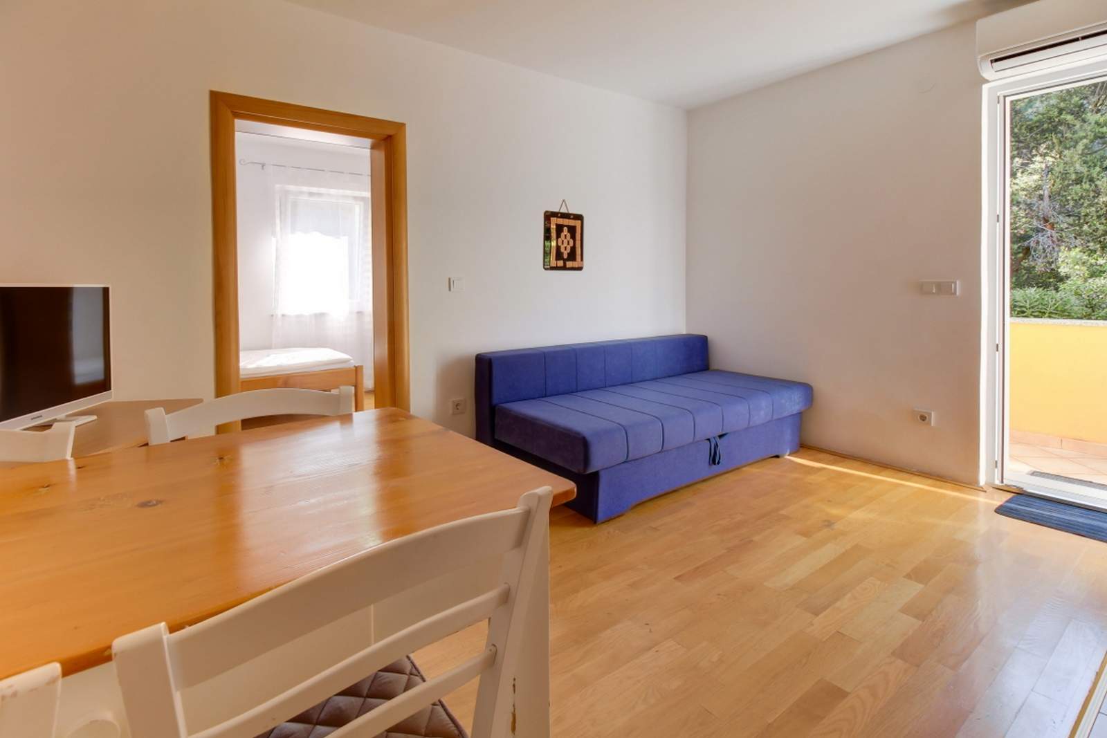 Apartment Bogdan 3 is located in the peaceful Artatore on the island of Lošinj, perfect for 4 people. The interior of the apartment is designed for comfort and functionality. It consists of a kitchen and living room. The kitchen is equipped with appliances, including a refrigerator, stove, coffee machine and toaster. The bedrooms feature a double bed and two single beds, ensuring privacy for all guests. The apartment is equipped with WLAN, TV and air conditioning, ensuring a comfortable stay in all conditions.