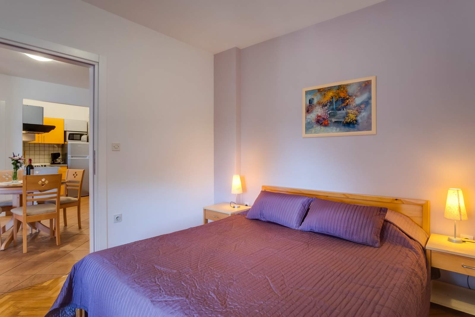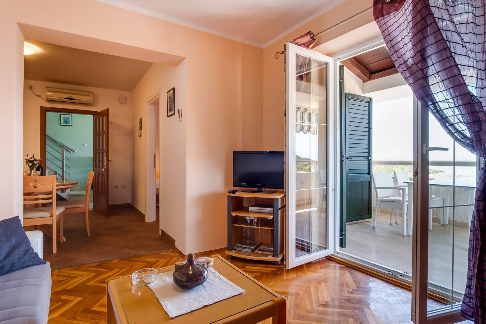 Apartment Branka 2 is located on the first floor of a family house, just 100 m from the sea and close to the charming Sveti Martin fishing port. Ideal for 4 guests, it offers two bedrooms – one with a double bed and one with two single beds. The fully equipped kitchen includes a stove, microwave, refrigerator and coffee maker, while the dining and living area provides comfortable seating and satellite TV. The bathroom with shower includes all essentials, and free WiFi is available. A spacious balcony with sea view is perfect for relaxing. Nearby beaches include Bojčić, Zagazinjine and Valdarke. A short walk brings you to the center of Mali Lošinj, home to the renowned Museum of Apoxyomenos. For exploring the island, bicycles and scooters can be rented through Mediteran: rent a bike | rent a scooter.