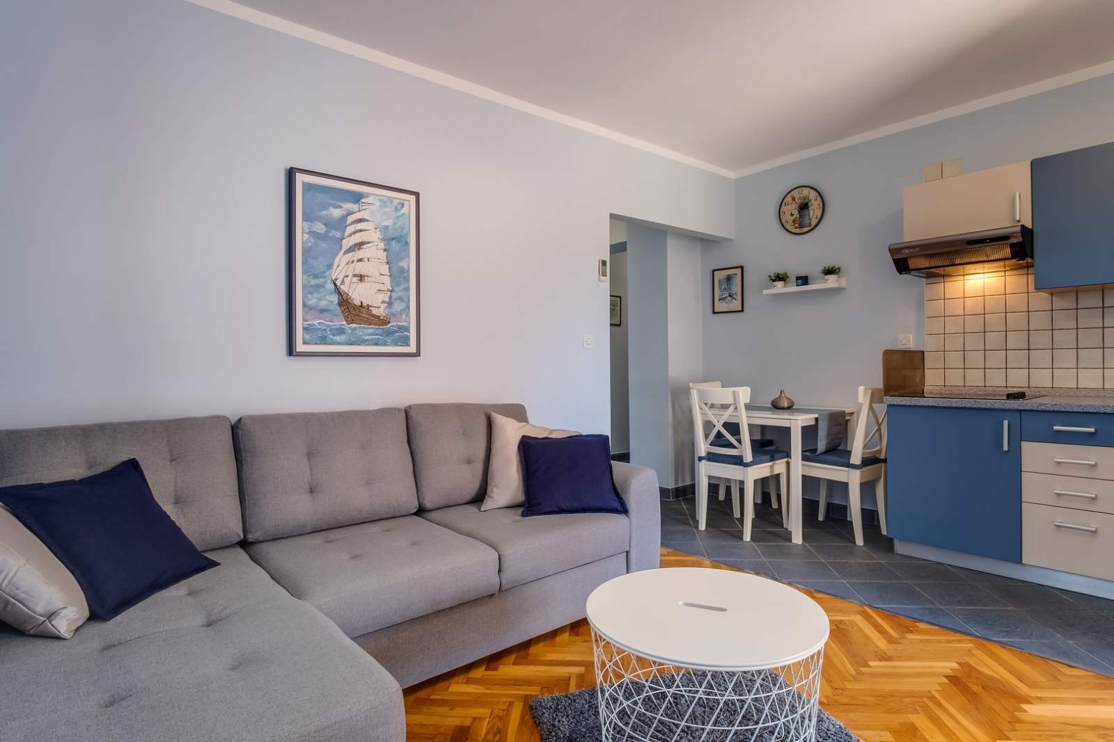Apartment Branka 3 is perfect for 2 guests and is located on the second floor, close to the sea and the charming Sv. Martin harbor. The cozy interior includes a double bed, sofa, dining table, satellite TV, air conditioning and free WiFi. The kitchen is fully equipped with a stove, fridge, microwave and kettle. The balcony with a sea view is an ideal place to relax. Nearby beaches include Bojčić, Zagazinjine and Valdarke. The famous Museum of Apoxyomenos, located at the entrance to Mali Lošinj, is easily accessible. The area offers great walking and cycling routes. Bikes and scooters can be rented through the Mediteran agency: rent a bike | rent a scooter.