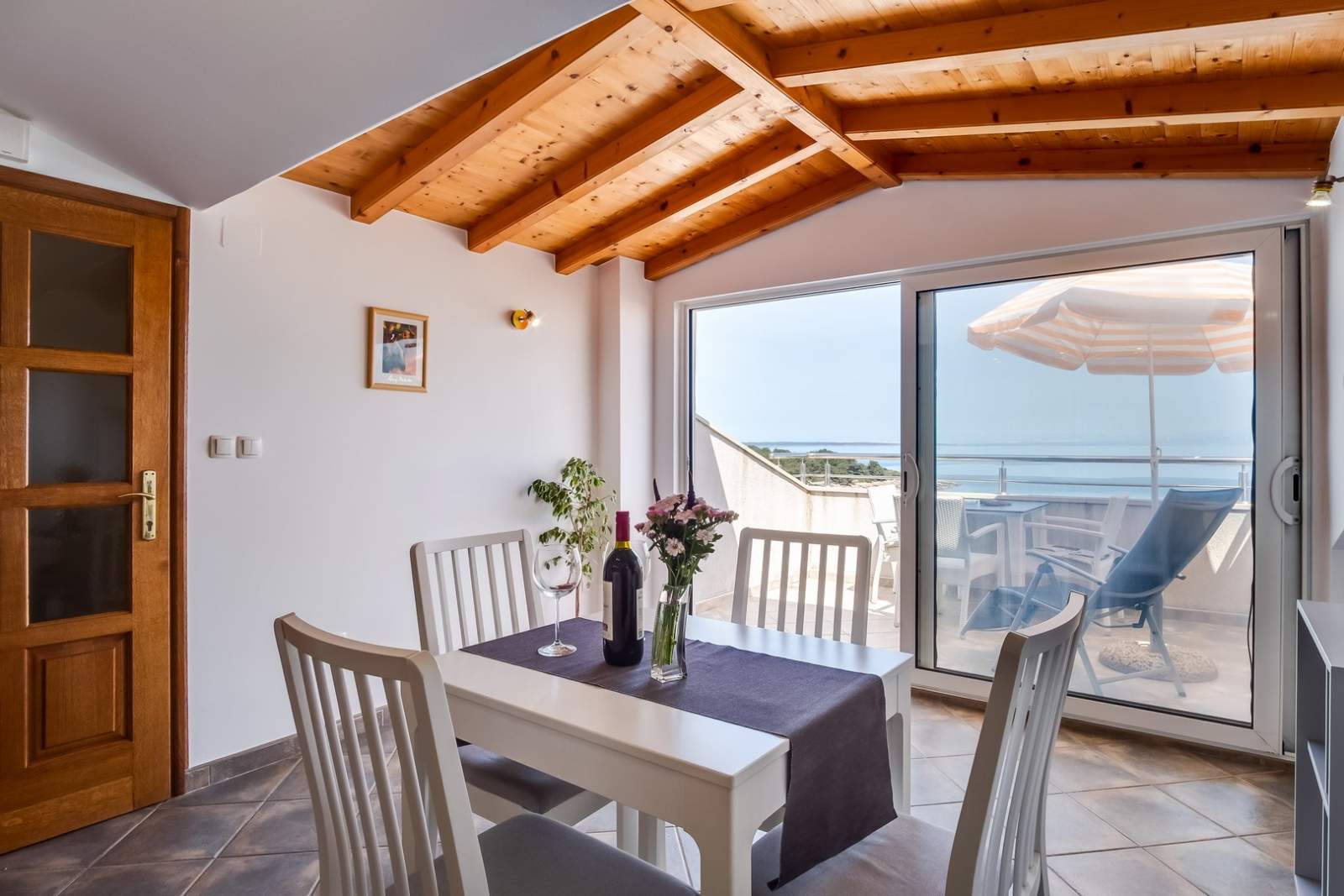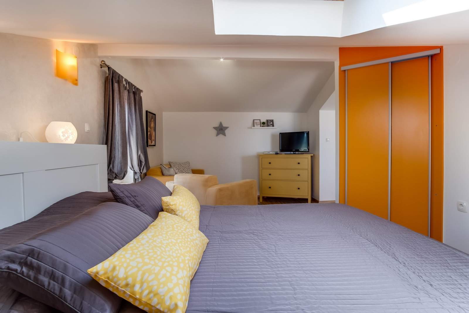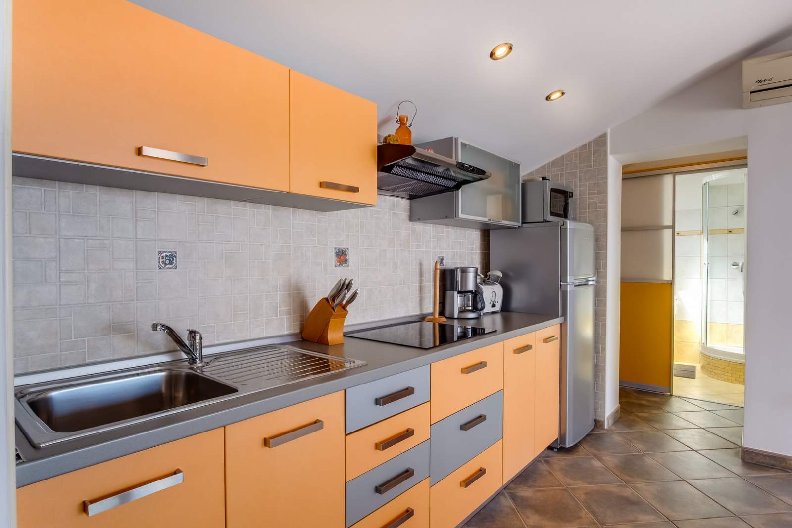 Apartment Branka 4 is located on the third floor of a family house, just 100 m from the sea and close to the charming Sveti Martin harbor. Ideal for 2 guests, it features a bedroom with a double bed, a modern kitchen equipped with a stove, refrigerator, microwave and coffee maker, a dining area and a living room with TV and free WiFi. The bathroom includes a shower and essential toiletries. A spacious balcony offers a beautiful sea view. Nearby beaches include Bojčić, Zagazinjine and Valdarke. The center of Mali Lošinj, home to the famous Museum of Apoxyomenos, is within easy walking distance. Bikes and scooters can be rented through the Mediteran agency: rent a bike | rent a scooter.