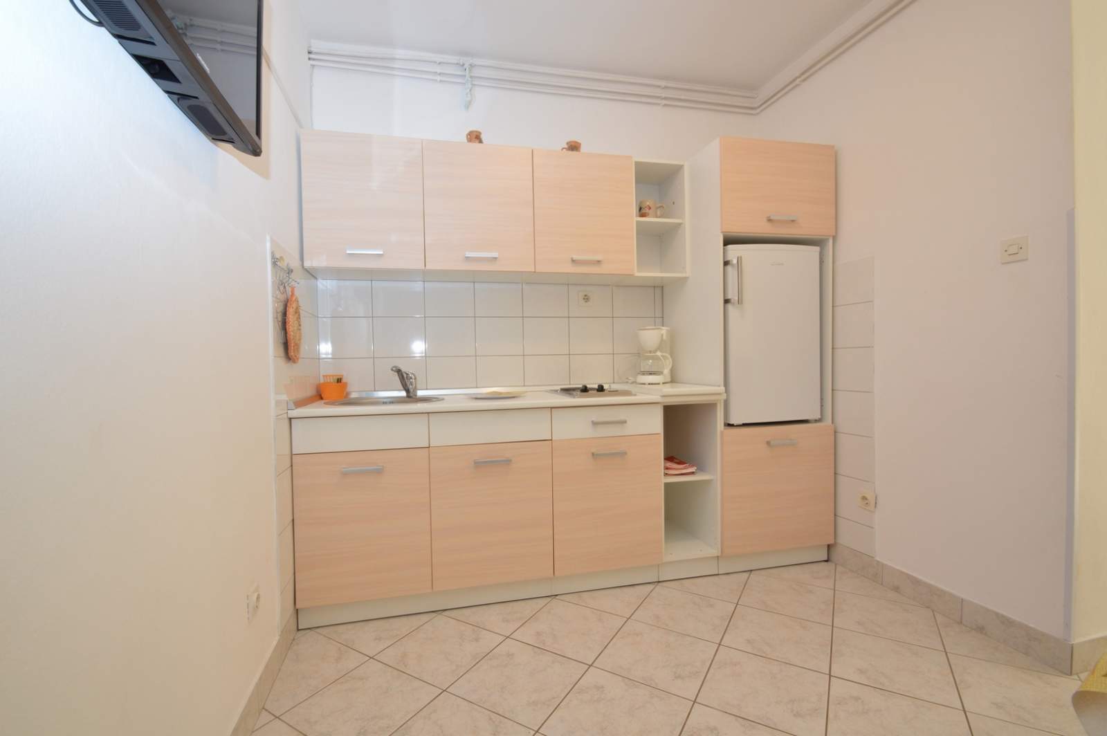 The Brigita 2 apartment is located on the ground floor, ideal for 4 people. It features two bedrooms with double beds, offering a comfortable and cozy stay. The kitchen is equipped with all necessary appliances, including a refrigerator, stove and coffee maker, perfect for preparing meals. The bathroom with a shower provides cleanliness and convenience. The dining area is furnished with a dining table and comfortable furniture, creating a pleasant space for relaxation. The apartment also includes free Wi-Fi, air conditioning and a TV, ensuring your stay is as comfortable as possible.