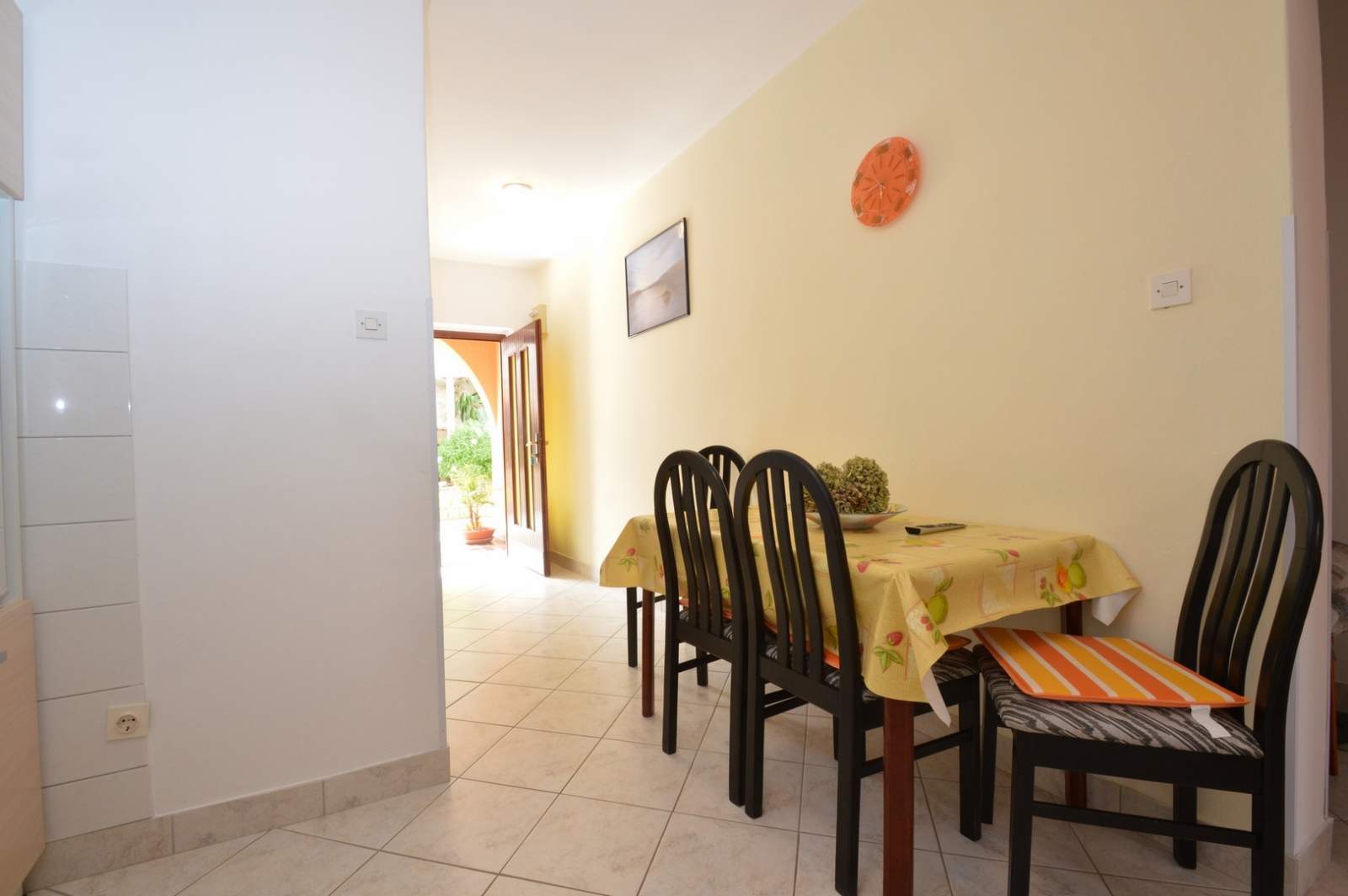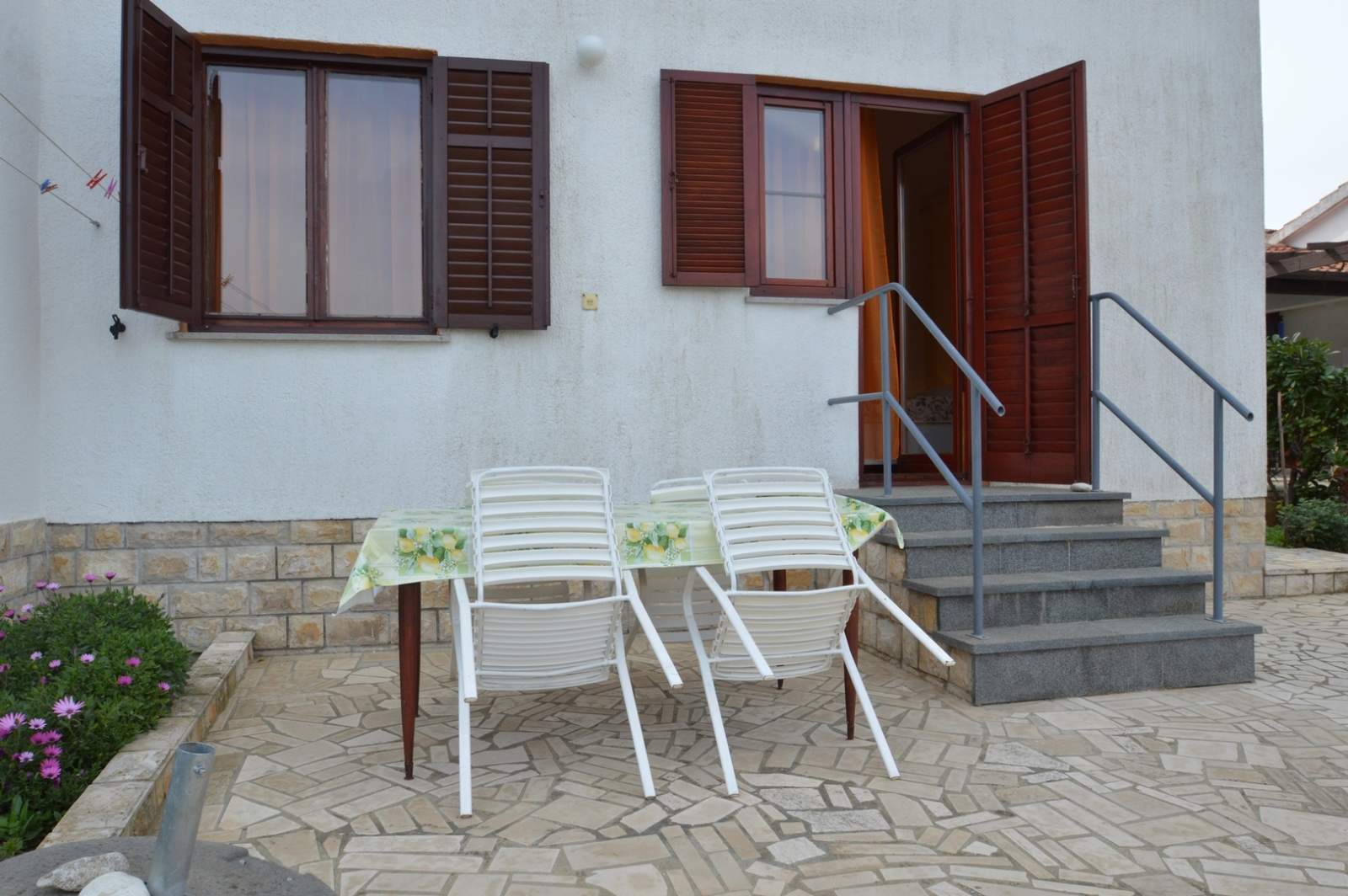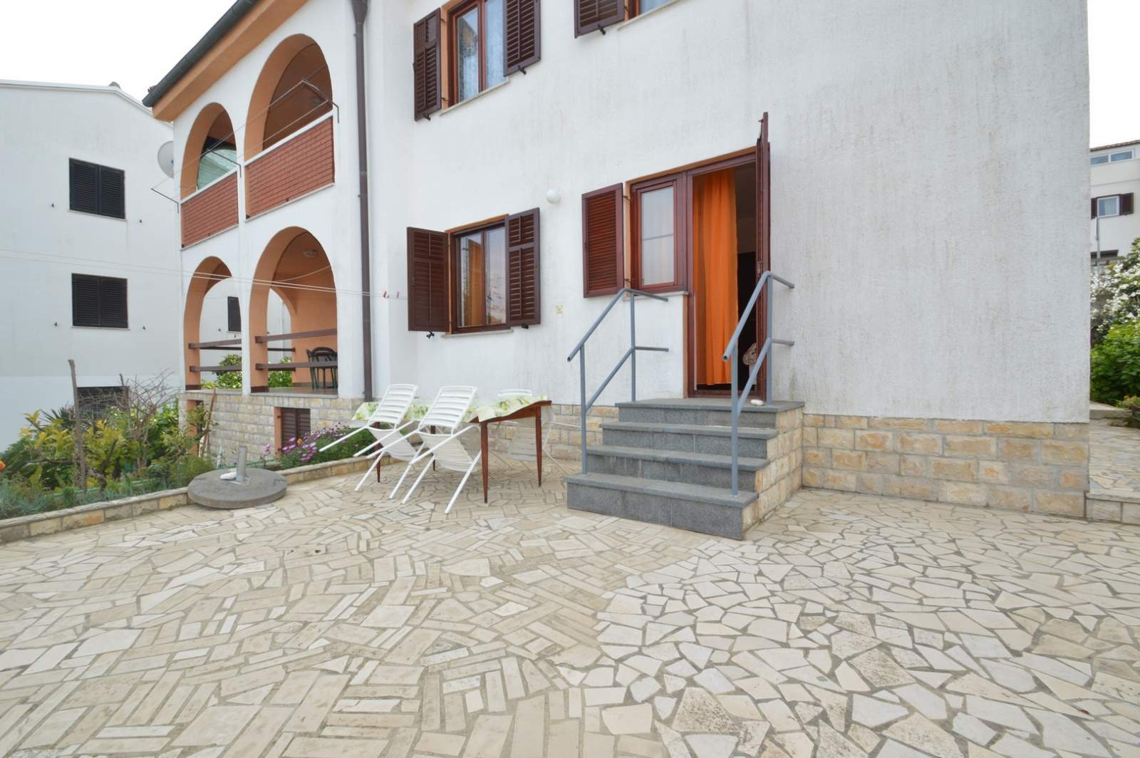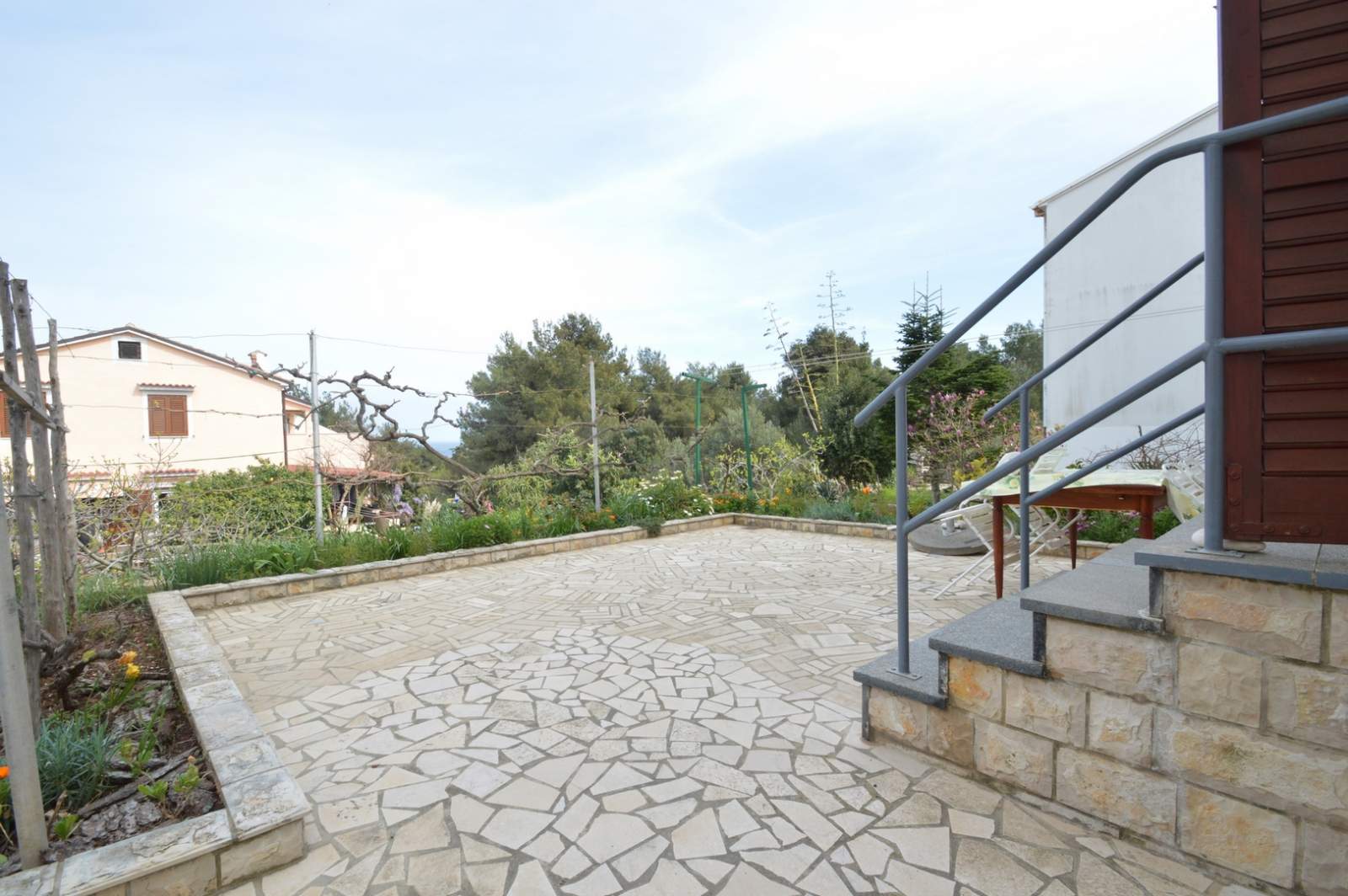 The spacious terrace of the Brigita 2 apartment offers the perfect spot for enjoying a morning coffee or relaxing in the evening. The terrace is equipped with a table and chairs, ideal for family gatherings or peaceful reading. A private parking spot ensures worry-free parking during your stay. The apartment's location provides a peaceful environment while being just a few minutes’ walk from Zagazinjine Beach and the center of Mali Lošinj.