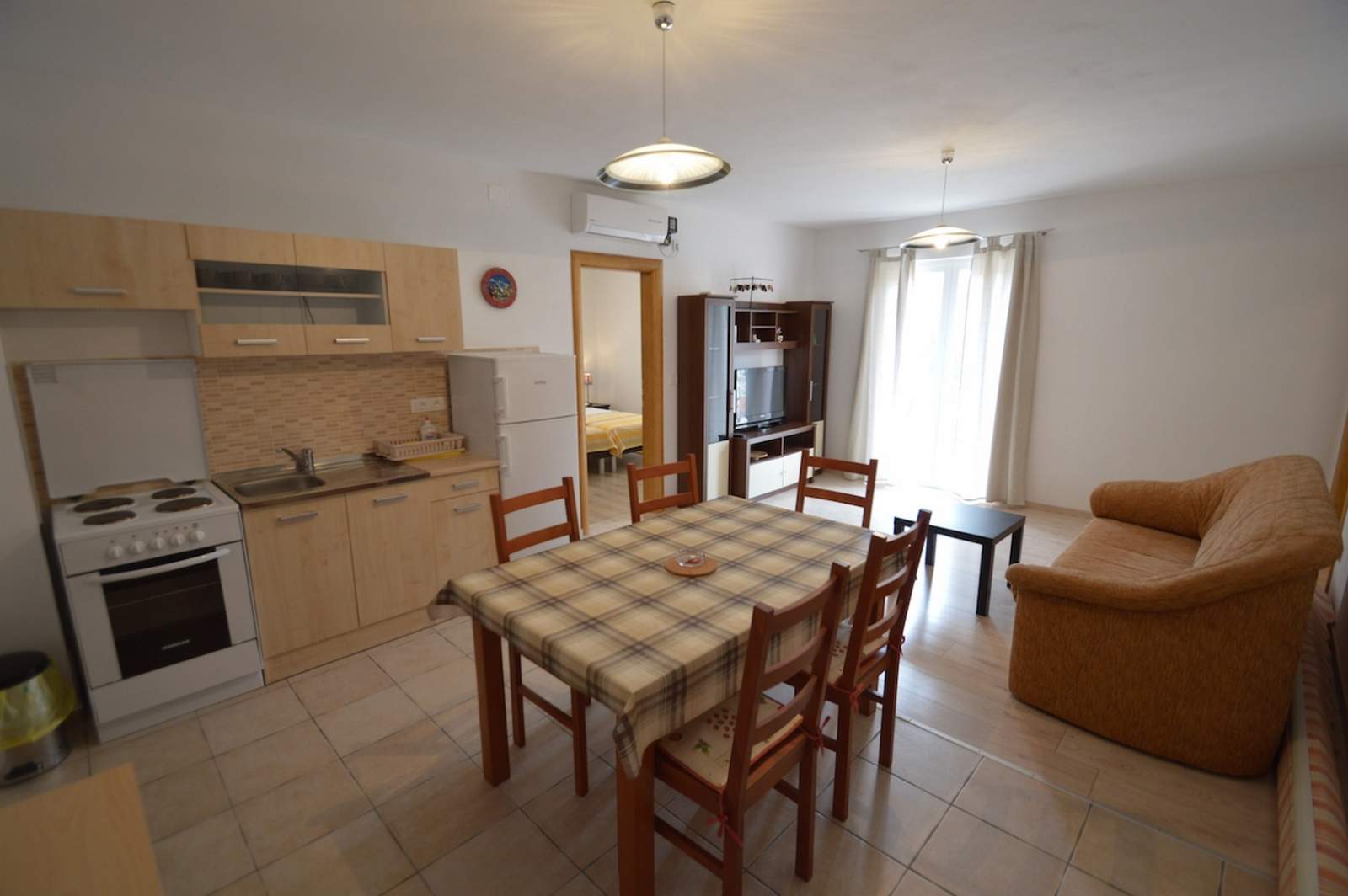 Apartment Duje 1 is located in the peaceful area of Artatore, just 7 km from Mali Lošinj, offering 65 m² of modern, comfortable living space ideal for families or groups of up to four guests. The two bedrooms feature quality beds and linens, while the fully equipped kitchen with a freezer-equipped refrigerator, stovetop and oven makes meal preparation easy. The spacious living room with a cozy sofa and smart TV is perfect for unwinding, and the bathroom includes a shower and essential toiletries. Guests can relax on the outdoor terrace, and private parking is available in front of the house. Nearby beaches such as Artatore Beach, Sunčana Uvala and Zagazinjine offer crystal-clear waters ideal for swimming. A short drive takes you to Mali Lošinj, home to the famous Museum of Apoxyomenos. To explore the island further, bicycles and scooters can be rented at the Mediteran agency: rent a bike and rent a scooter.