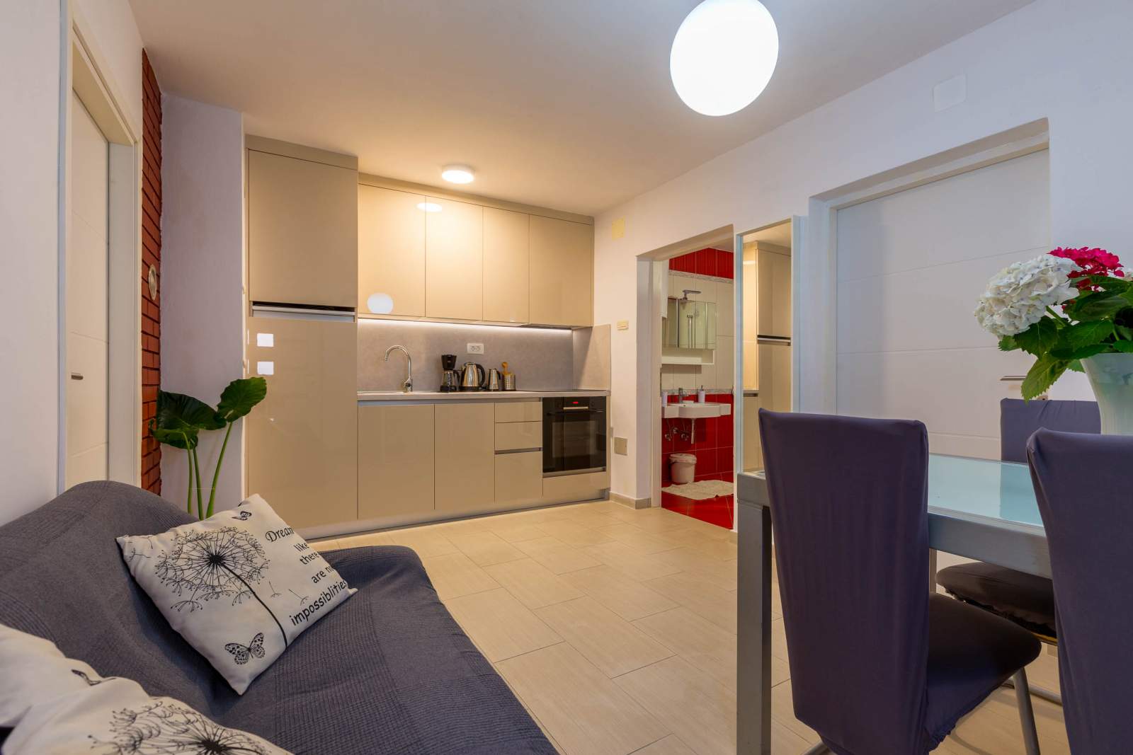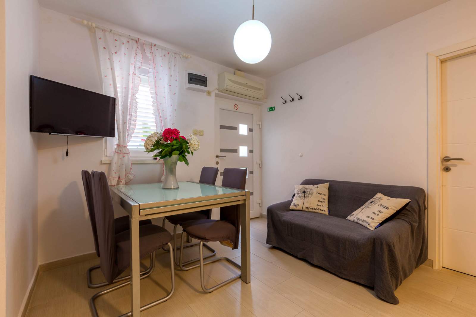 Apartment Elena 1 is a modern and comfortable stay for up to 4 guests, located in a peaceful part of Mali Lošinj just a short walk from the town center. It features two cozy double bedrooms, a bright living room with a smart TV and air conditioning, and a fully equipped kitchen with a stove, microwave, fridge and coffee maker. The bathroom includes a shower and essential toiletries. Outside, guests can enjoy a private terrace perfect for relaxing, while private parking is provided directly in front of the apartment. Nearby beaches such as Bojčić, Zagazinjine and Valdarke are easily reachable along scenic seaside paths. The famous Museum of Apoxyomenos, one of the town’s main cultural attractions, is located about 480 m away in the center. Visitors can also rent bicycles or scooters at Mediteran: rent a bike and rent a scooter.