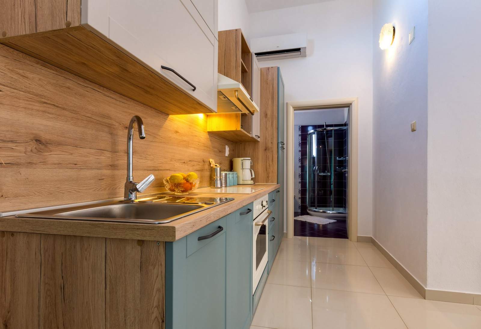 Apartment Elena 2 is located on the second floor and offers a comfortable stay for up to 4 guests in a peaceful area of Mali Lošinj. It features two spacious double bedrooms, an air-conditioned living room with a TV, and a fully equipped kitchen including a cooktop, oven, refrigerator and coffee maker. The bathroom comes with a shower and essential toiletries. A private terrace provides a relaxing outdoor space, while private parking is available directly in front of the building. The sea is only 250 m away, with beautiful beaches such as Bojčić, Zagazinjine and Valdarke within easy reach. The famous Museum of Apoxyomenos, one of the city’s key cultural attractions, is located about 480 m from the center. At the Mediteran agency, guests can rent bicycles and scooters to explore the island: rent a bike and rent a scooter.