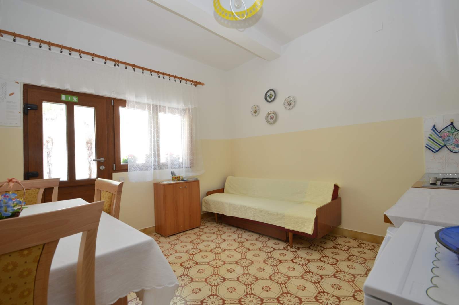 Apartment Kadin is located in the peaceful Malin area of Mali Lošinj, just a short walk from the sea and the town center. Positioned on the ground floor of a family house, it offers comfortable accommodation for two guests, featuring a bedroom with a double bed, a cozy living area with dining space, and a practical kitchen equipped with a fridge, stove and coffee maker. The bathroom includes a bathtub for added comfort. Guests can enjoy a private terrace surrounded by greenery, perfect for relaxing in a quiet outdoor setting. Nearby, the beautiful Kadin Beach offers crystal-clear waters, along with other easily accessible town beaches. The Museum of Apoxyomenos, one of the island’s most important cultural attractions, is located just 200 meters away in the center of Mali Lošinj. For exploring the island, bicycles and scooters can be rented through the Mediteran agency: Rent a Bike Lošinj and Rent a Scooter Lošinj. The apartment’s location provides the perfect balance of tranquility, nature and access to all amenities.