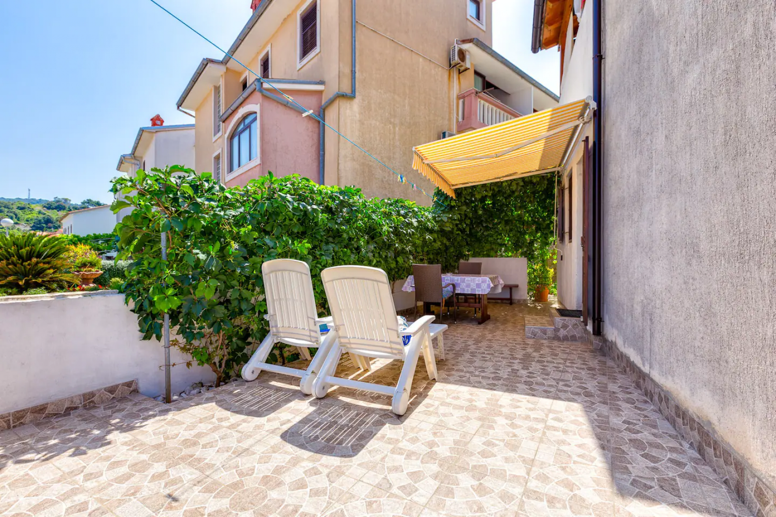 Apartment Karolina 4 is located in a peaceful part of Mali Lošinj, just 200 m from the sea, and is ideal for two guests. The interior is modern and comfortable, featuring a double bed, a fully equipped kitchen with a stove, fridge, kettle and coffee maker, as well as a dining area. The bathroom includes a shower and essential toiletries. Free Wi-Fi and satellite TV ensure additional comfort. A private terrace offers a relaxing outdoor area, perfect for morning coffee or evening downtime, and private parking is provided. The nearby St. Martin Beach is great for swimming and sunbathing, while scenic coastal paths lead to other beautiful beaches. The town center is 750 m away and is home to the renowned Museum of Apoxyomenos. Guests can enjoy walking and cycling routes, and can rent bicycles or scooters at the Mediteran agency: Rent a Bike Lošinj and Rent a Scooter Lošinj.