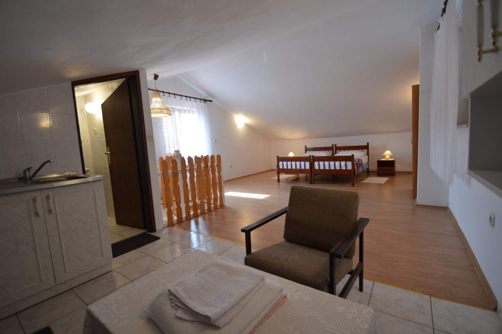 Apartment Lakić 2 is located in the peaceful area of Artatore and offers a comfortable stay for families and couples. The interior includes two bedrooms with comfortable beds and spacious wardrobes. The kitchen is equipped with a stove, oven and refrigerator, while the dining area is perfect for family meals. The living room features a smart TV and free WiFi. The bathroom includes a bathtub for added relaxation. The balcony provides a lovely view of the sea and surrounding nature, and private parking is available just outside. Nearby are the beaches of Artatore and Čikat, while Mali Lošinj and the Museum of Apoxyomenos are only a short drive away. Artatore is ideal for nature lovers with its many walking paths and scenic viewpoints. Bikes and scooters can be rented via the Mediteran agency – more at rent a bike and rent a scooter.