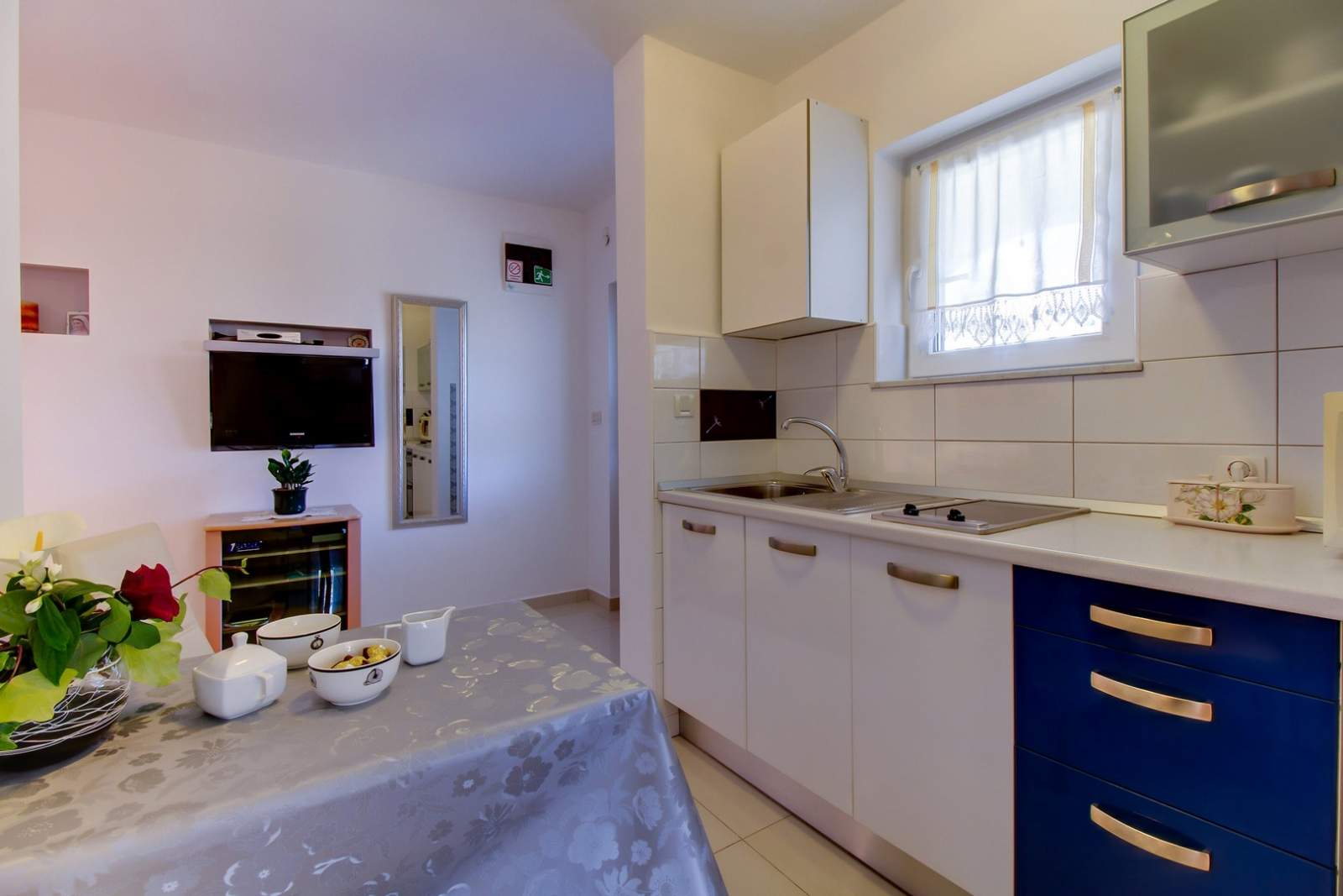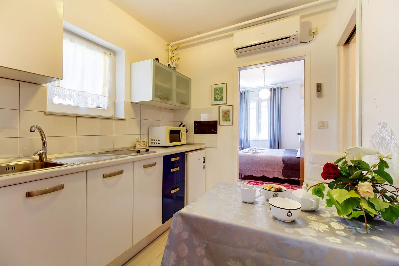 Apartment Lily 1 is located in a peaceful area of Mali Lošinj, offering an ideal retreat for two guests. The interior includes a spacious bedroom with a double bed, a modern bathroom with a shower, and a comfortable living area. The fully equipped kitchen features a refrigerator, stove, microwave and coffee maker, while the dining area provides a cozy space for meals. A private terrace with outdoor seating offers a relaxing spot for morning coffee or evening downtime, and parking is available in front of the house. The apartment is just a short walk from the sea and near popular beaches such as Bojčić and Zagazinjine. In the town center, only 500 m away, visitors can explore the famous Museum of Apoxyomenos. The area is perfect for walking, cycling and discovering natural beauty. Bicycle and scooter rentals are available through the Mediteran agency: rent a bike and rent a scooter.