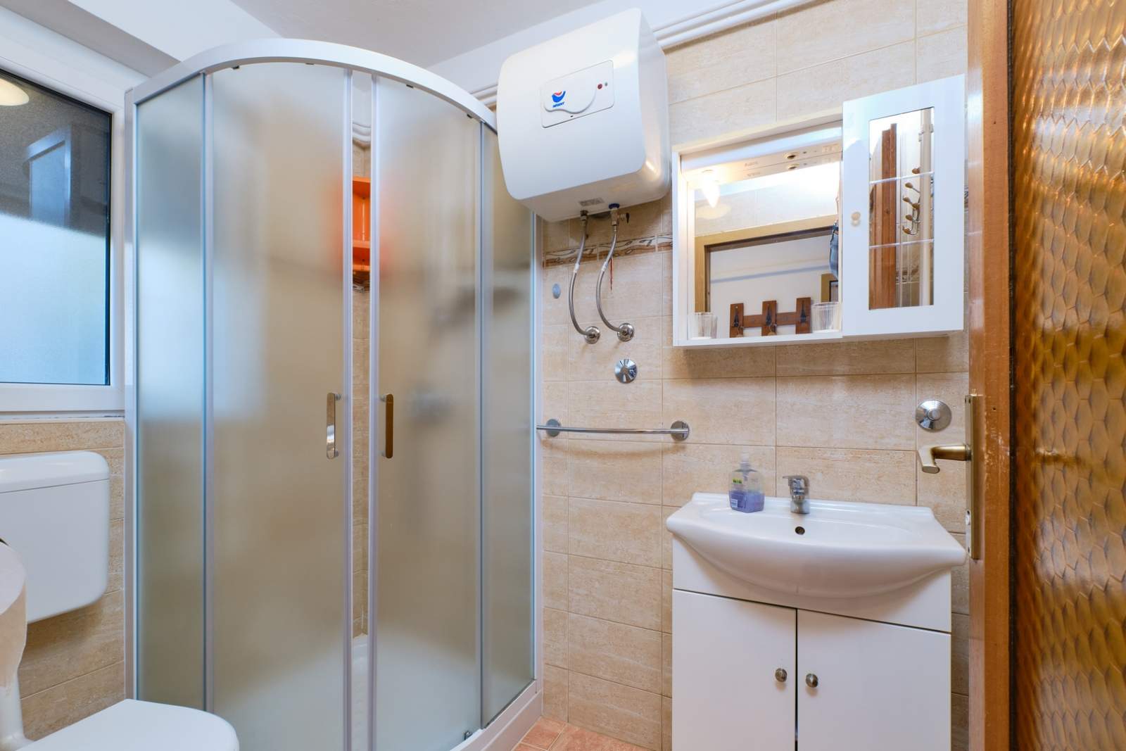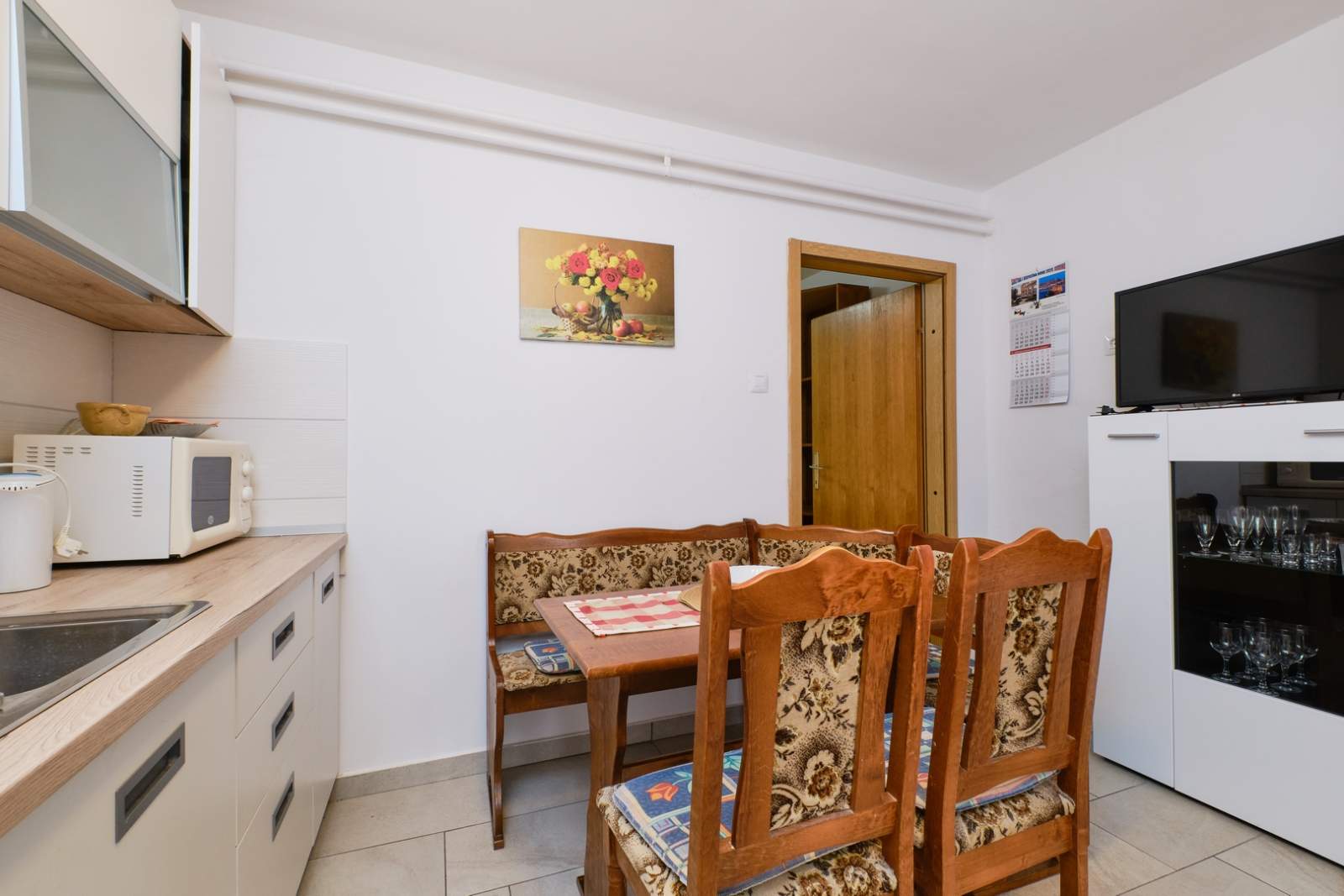 Apartment Limone is located in a quiet area of Mali Lošinj and is perfect for up to 4 guests looking for comfort close to the sea. The bright, modern interior features two cozy bedrooms, an air-conditioned dining area with flat-screen TV and free Wi-Fi. A fully equipped kitchen with oven, fridge, dishwasher and microwave makes everyday living easy and relaxed. The bathroom includes a shower and essential amenities. A private ground-floor terrace overlooking the garden is ideal for morning coffee or evening relaxation. Nearby beaches Sv. Martin, Bojčić and Zagazinjine are known for their crystal-clear sea. The town center and the Apoxyomenos Museum, located near the harbor in Mali Lošinj, are easily accessible. At the Mediteran agency, guests can rent bicycles and scooters via Rent a Bike Lošinj and Rent a Scooter Lošinj, perfect for exploring the island.