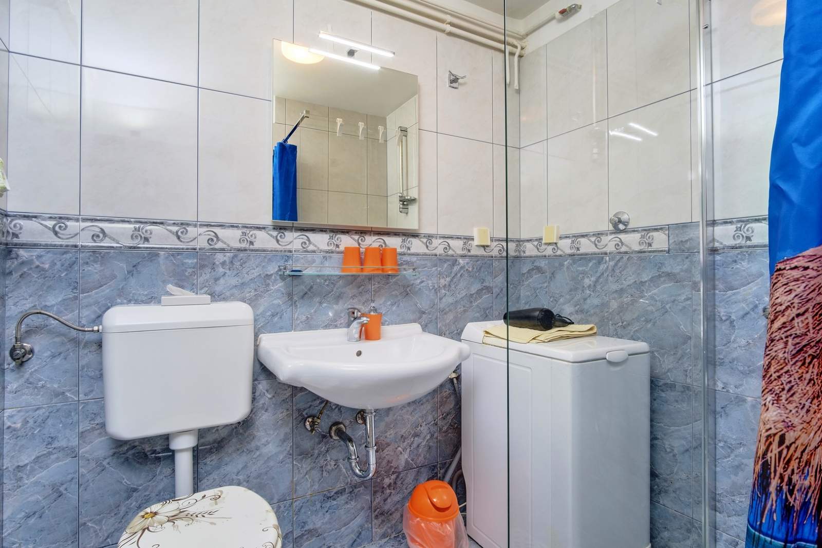 Apartment Marta 1 offers a modern and comfortable interior ideal for 2–3 guests. The bedroom features a double bed with quality linens, while the living room with a sofa bed provides additional sleeping space. The fully equipped kitchen includes a refrigerator, stove and oven. The bathroom features a shower, washing machine and hairdryer. The apartment is air-conditioned and includes free WiFi and satellite TV. A private terrace offers the perfect spot for outdoor dining, and the sea is just 180 meters away. Nearby beaches include Zagazinjine, Čikat and Bojčić, all known for clear water and natural beauty. The Museum of Apoxyomenos, located on the town’s waterfront, is a must-see cultural highlight. The area offers restaurants, shops, walking paths and cycling trails. Bikes and scooters are available for rent at the Mediteran agency – more info via rent a bike and rent a scooter.