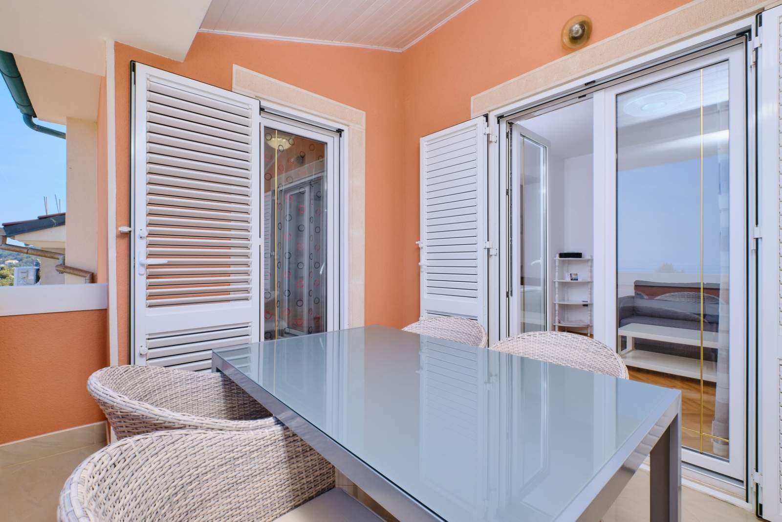 Apartment Orangina 3 is located on the third floor and offers a comfortable stay just steps from the sea. Only 100 meters from Sv. Martin Beach and within easy reach of Zagazinjine and Bojčić beaches, the apartment accommodates up to five guests. It features two bedrooms with double beds, a cozy living room with a sofa bed, a fully equipped kitchen and a dining area. The kitchen includes a refrigerator, stove, microwave and coffee maker. The balcony provides stunning sea views, perfect for morning relaxation. The Museum of Apoxyomenos, located along the waterfront in the center of Mali Lošinj, is a must-visit cultural attraction nearby. Restaurants, shops and scenic walking paths are all within reach. At the Mediteran agency, guests can rent bicycles and scooters to explore the island with ease.