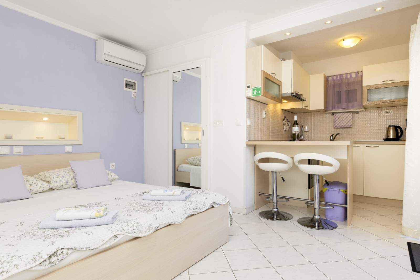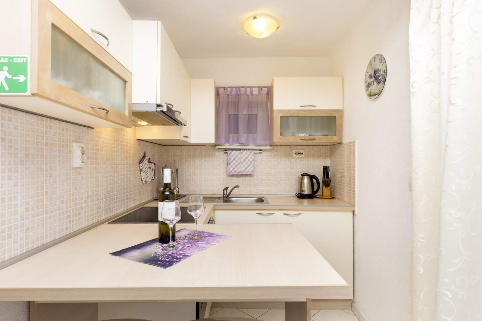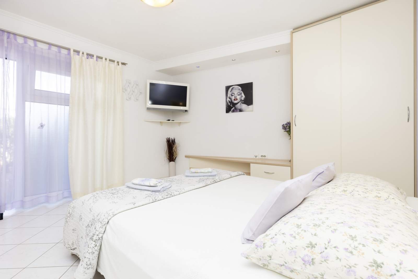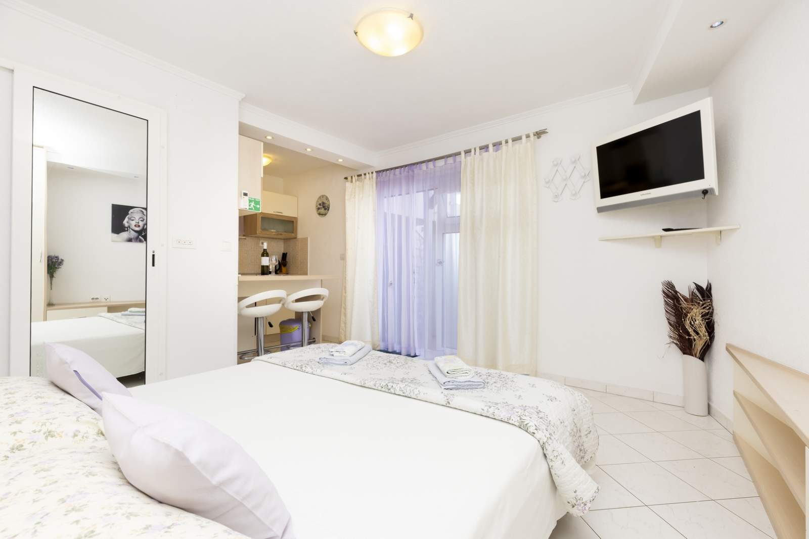 Apartment Sandra 2 is located in a peaceful part of Mali Lošinj and offers a modern, comfortable setting ideal for two guests. The bright living area and fully equipped kitchen provide convenience, while the bedroom with a high-quality mattress and the contemporary bathroom ensure relaxation. A private terrace surrounded by greenery creates the perfect outdoor retreat. The nearby Kadin Beach is only a short walk away, with Zagazinjine Beach and Sveti Martin Beach also easily accessible. The renowned Museum of Apoxyomenos, located in the center of Mali Lošinj, is a must-visit cultural attraction. Scenic coastal walking and cycling paths invite guests to explore the island. Bikes and scooters can be rented at the Mediteran agency: rent a bike and rent a scooter.