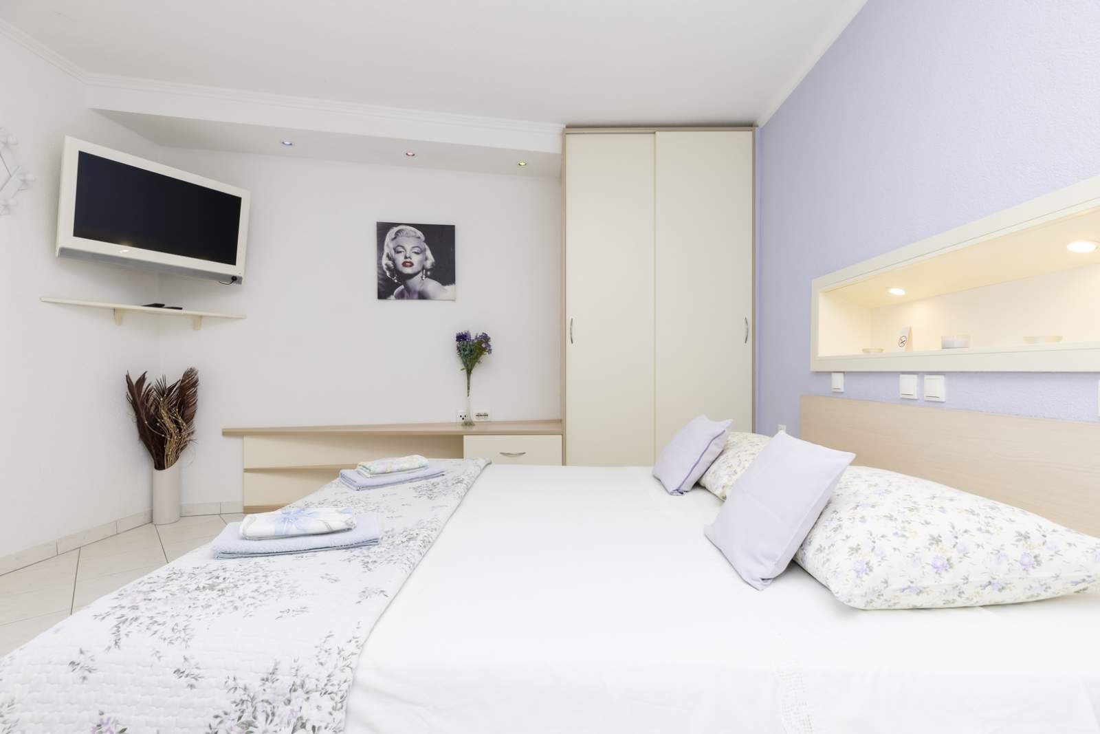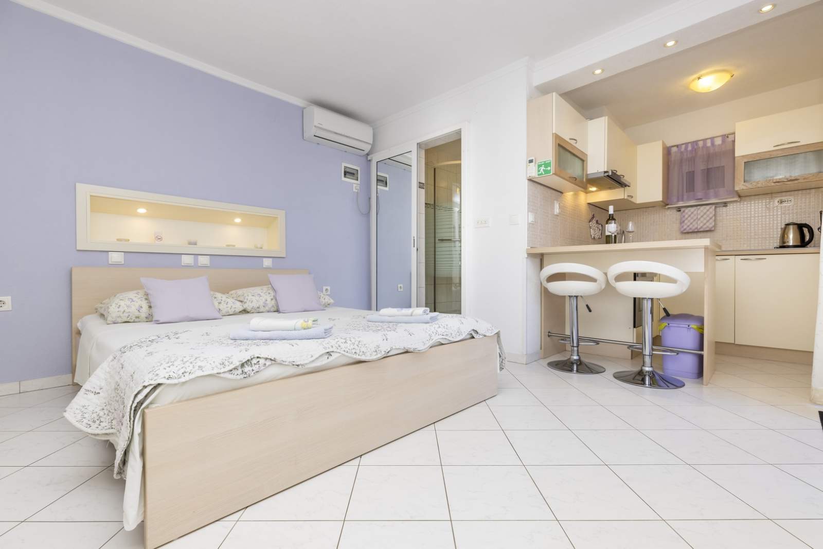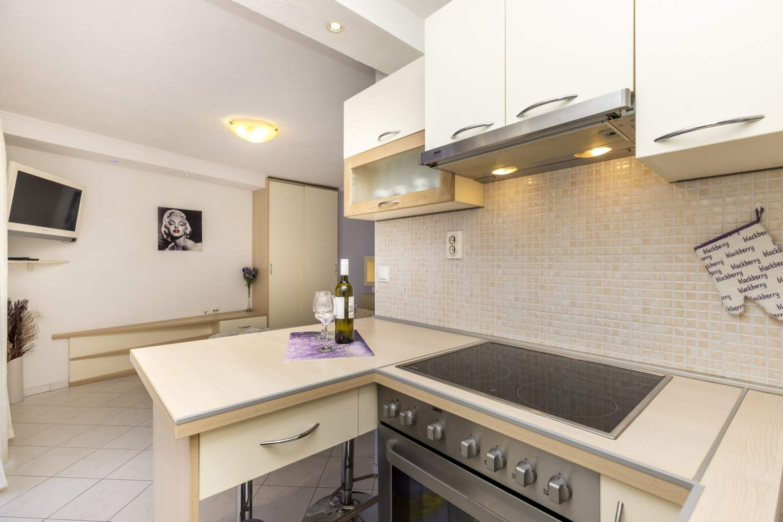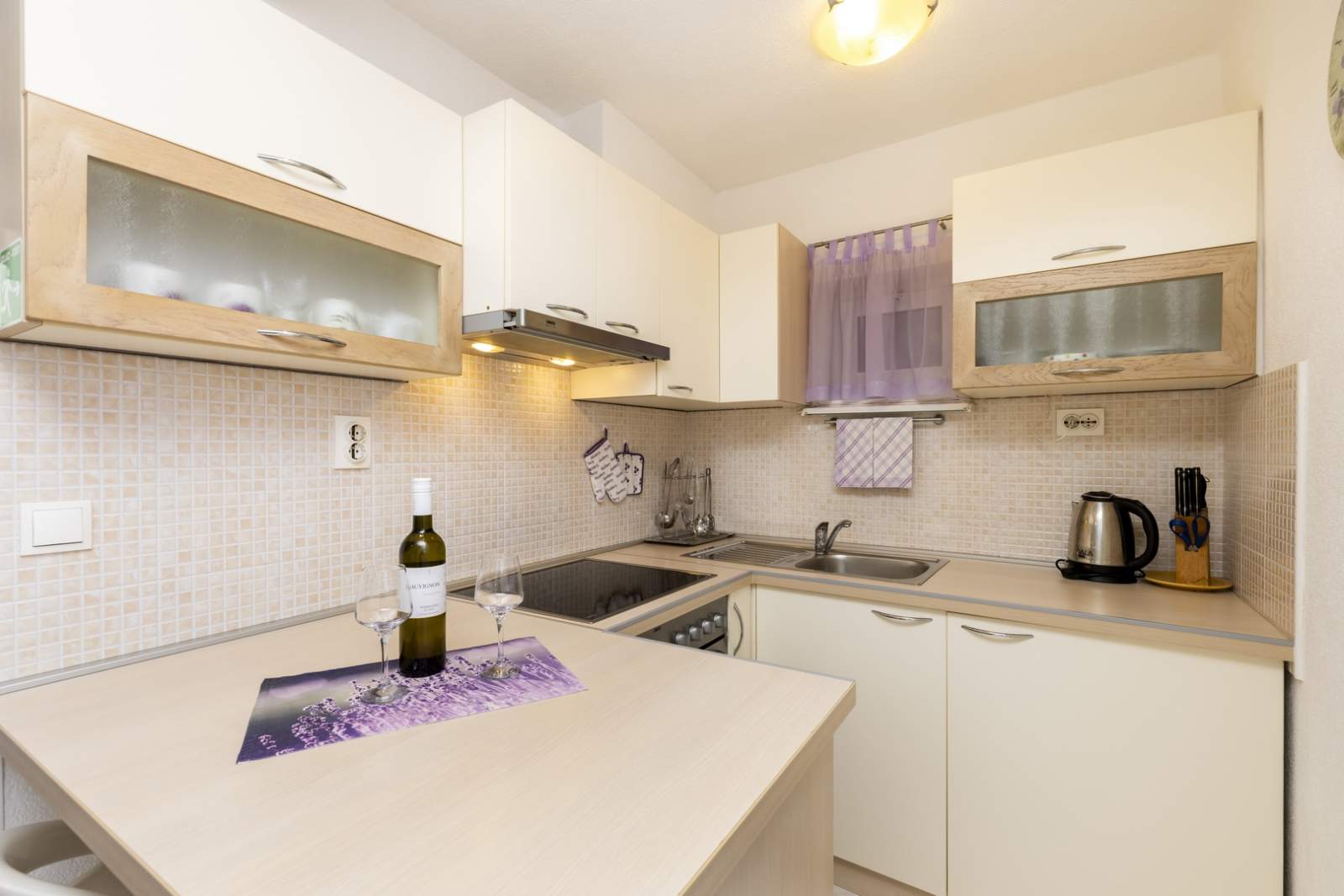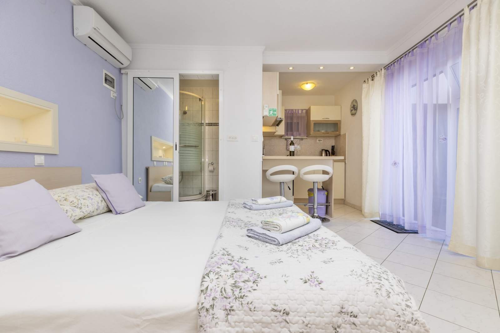 Apartment Sandra 2 is located in a peaceful part of Mali Lošinj and offers a modern, comfortable setting ideal for two guests. The bright living area and fully equipped kitchen provide convenience, while the bedroom with a high-quality mattress and the contemporary bathroom ensure relaxation. A private terrace surrounded by greenery creates the perfect outdoor retreat. The nearby Kadin Beach is only a short walk away, with Zagazinjine Beach and Sveti Martin Beach also easily accessible. The renowned Museum of Apoxyomenos, located in the center of Mali Lošinj, is a must-visit cultural attraction. Scenic coastal walking and cycling paths invite guests to explore the island. Bikes and scooters can be rented at the Mediteran agency: rent a bike and rent a scooter.