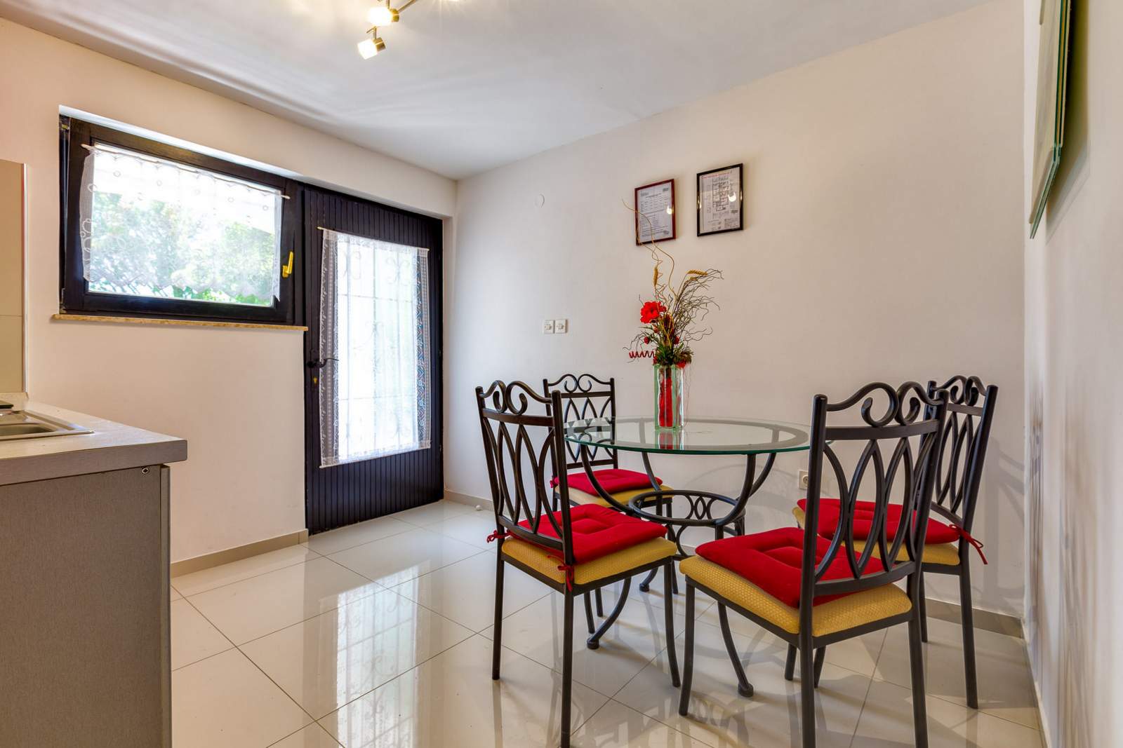 Apartment Sofija 2 is located in the peaceful area of Artatore, just 100 meters from the sea, making it an ideal choice for couples seeking relaxation and privacy. The modern interior features a fully equipped kitchen, a comfortable bedroom and an elegant bathroom. A private terrace overlooking greenery provides the perfect space to unwind. Nearby beaches include Artatore, Venerica and Ružmarinka, all known for their clear waters and tranquil atmosphere. Mali Lošinj is about 7 km away, where the Apoxyomenos Museum is located in the harbor area. The surroundings are perfect for walks in nature. Through the Mediteran agency, guests can rent bicycles and scooters via Rent a Bike Lošinj and Rent a Scooter Lošinj, ideal for exploring the island.