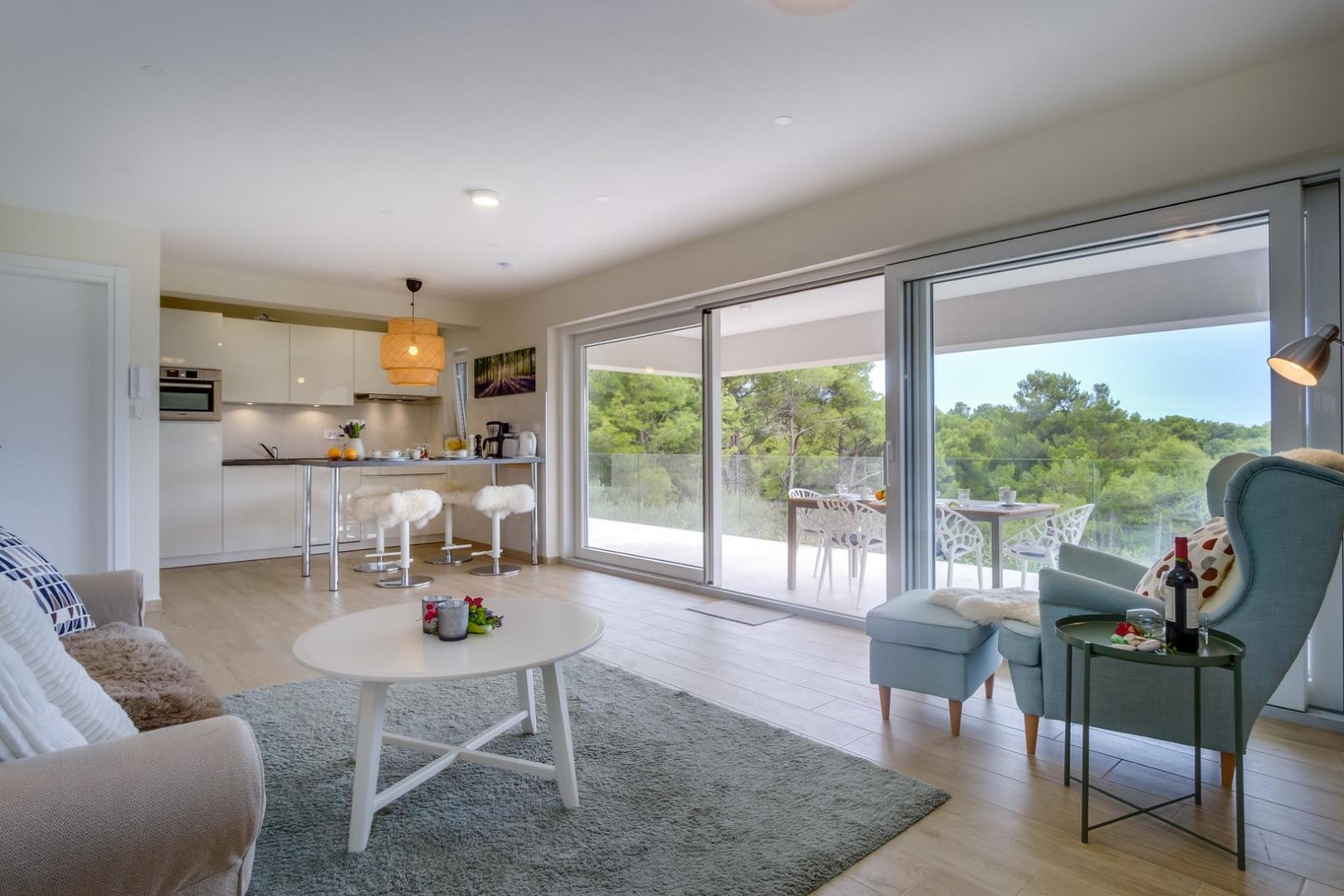 Luksuzni apartman od 97m² uz plažu u Malom Lošinju. Dvije spavaće sobe, terasa s pogledom na more. Rezervirajte sada i uživajte!