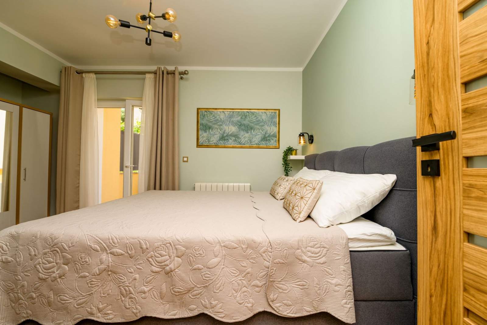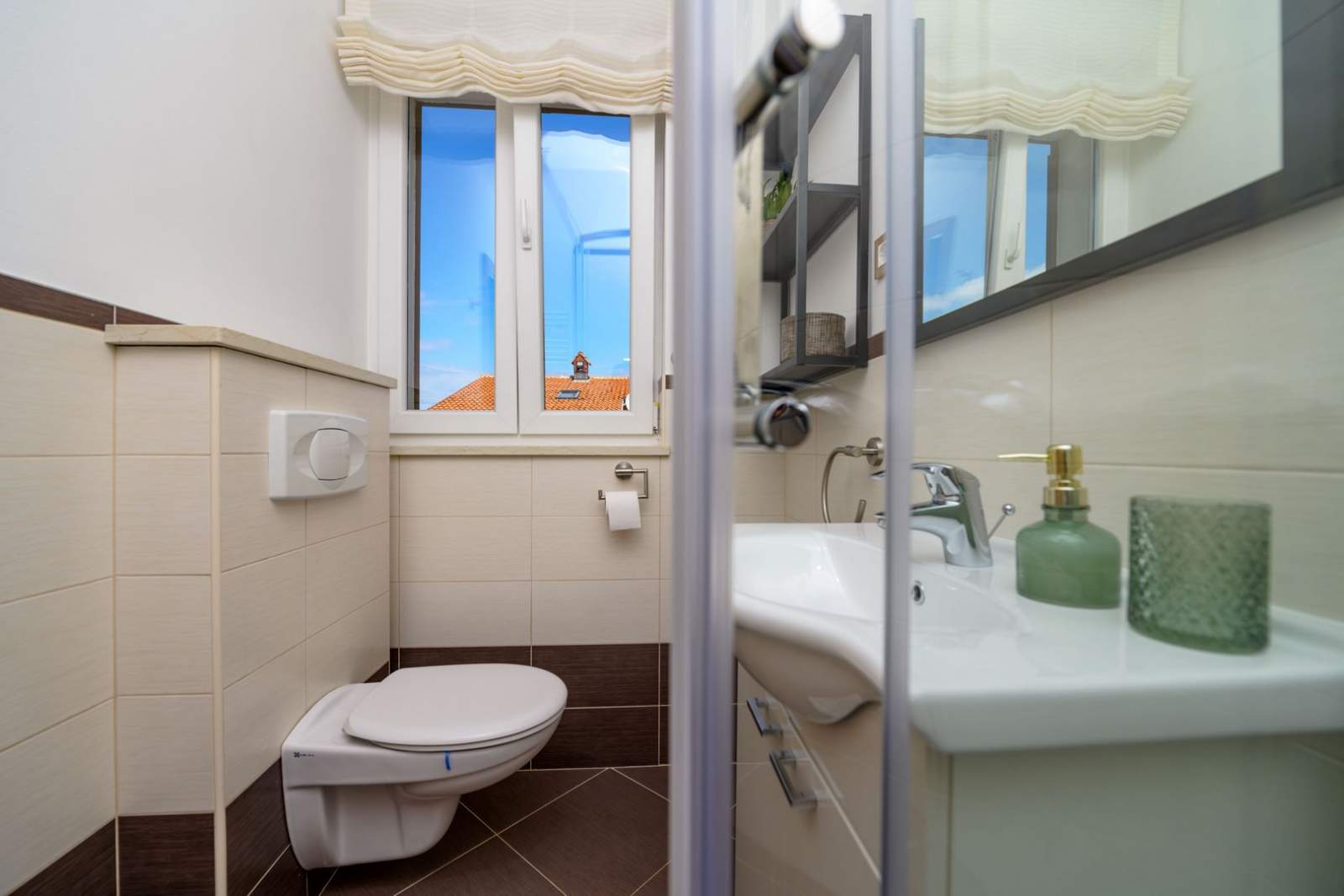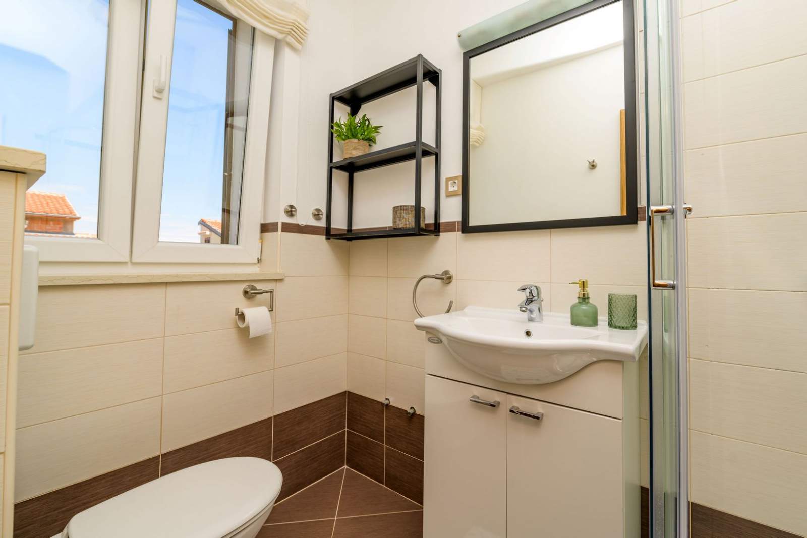 Apartman Ruža 3 u Malom Lošinju nudi luksuzan i moderan prostor od 55 m², savršen za obitelji. Dvije elegantne spavaće sobe i udoban dnevni boravak opremljen LCD televizorom, klimom i Wi-Fi mrežom stvaraju idealno okruženje za odmor. Kuhinja je potpuno opremljena – hladnjak, pećnica, štednjak, perilica posuđa i aparat za kavu omogućuju jednostavnu pripremu obroka. Balkon s prostorom za sjedenje pruža miran kutak za uživanje, a u prizemlju se nalazi privatni jacuzzi dostupan samo gostima apartmana. Lokacija je vrlo povoljna: plaža Sv. Martin udaljena je nekoliko minuta hoda, dok su plaže Zagazinjine i Bojčić također lako dostupne. U blizini se nalaze restorani, trgovine i šetnice uz more. Muzej Apoksiomena smješten je u centru Malog Lošinja i nezaobilazna je kulturna atrakcija. Gosti mogu istraživati otok pješice ili biciklom, a u agenciji Mediteran dostupni su najam bicikala i skutera.