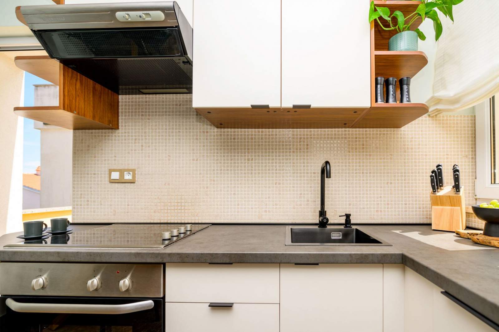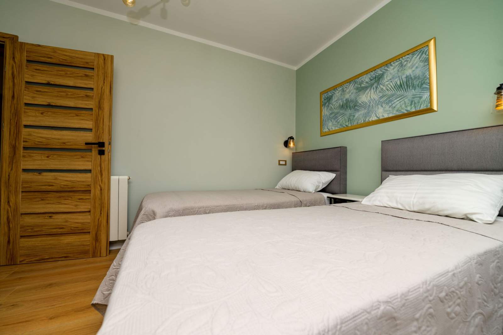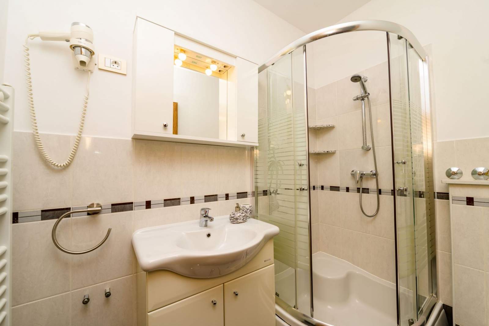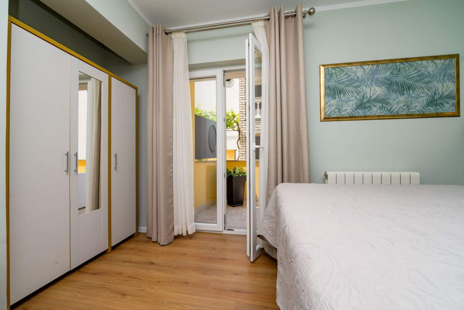Apartman Ruža 3 u Malom Lošinju nudi luksuzan i moderan prostor od 55 m², savršen za obitelji. Dvije elegantne spavaće sobe i udoban dnevni boravak opremljen LCD televizorom, klimom i Wi-Fi mrežom stvaraju idealno okruženje za odmor. Kuhinja je potpuno opremljena – hladnjak, pećnica, štednjak, perilica posuđa i aparat za kavu omogućuju jednostavnu pripremu obroka. Balkon s prostorom za sjedenje pruža miran kutak za uživanje, a u prizemlju se nalazi privatni jacuzzi dostupan samo gostima apartmana. Lokacija je vrlo povoljna: plaža Sv. Martin udaljena je nekoliko minuta hoda, dok su plaže Zagazinjine i Bojčić također lako dostupne. U blizini se nalaze restorani, trgovine i šetnice uz more. Muzej Apoksiomena smješten je u centru Malog Lošinja i nezaobilazna je kulturna atrakcija. Gosti mogu istraživati otok pješice ili biciklom, a u agenciji Mediteran dostupni su najam bicikala i skutera.
