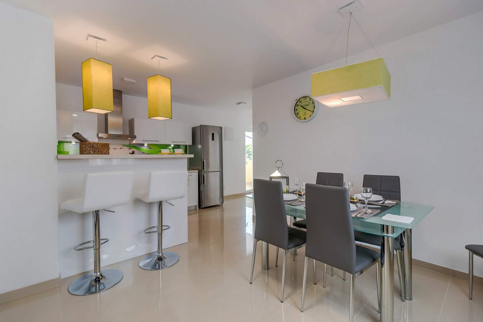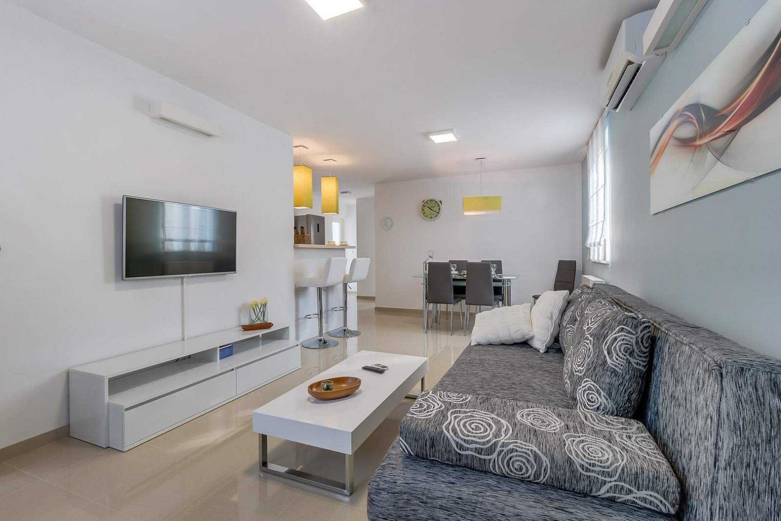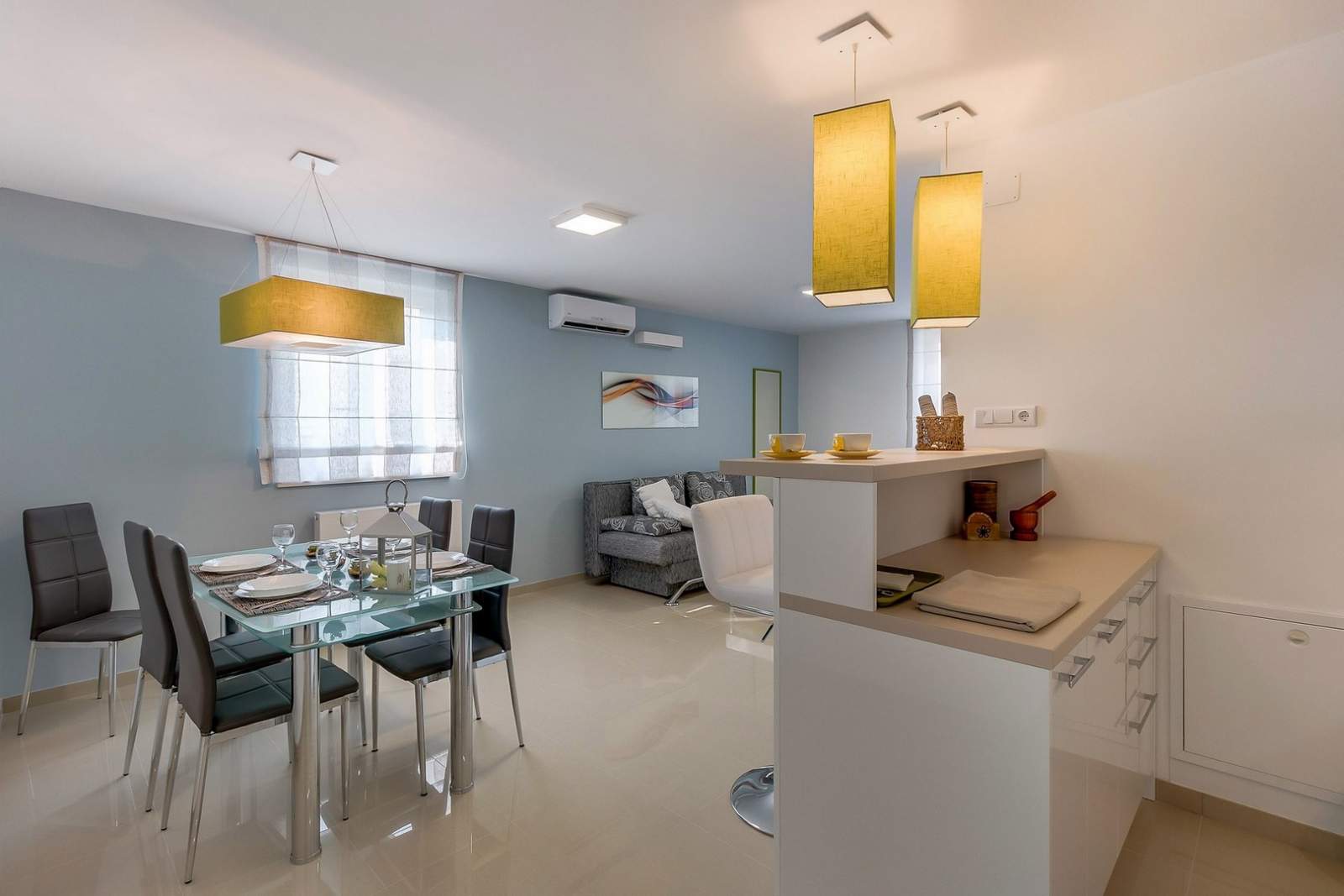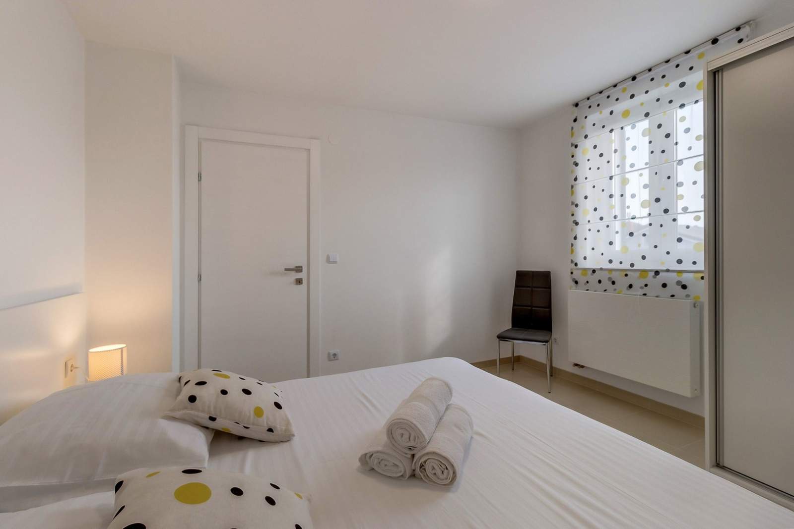Apartman je nov, cist, prijatan. Prostran i potpuno opremljen. Lokacija je odlicna jer je blizu centar grada za vecernje setnje, blizu su najlepse plaze ali i trgovine za dnevnu nabavku. Nas apartman je bio trostrano orijentisan ali uprkos tome noci su bile mirne i tihe, jer je pre svega izuzetno miran kraj. U dvoristu ima dovoljno prostora da parkirate vas auto, ali i vase bicikle.