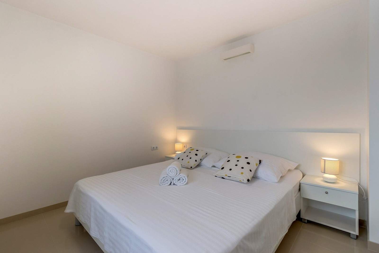 L’appartamento Ema a Lussinpiccolo è ideale per 2–4 persone e offre un interno moderno con una spaziosa camera matrimoniale e un soggiorno con divano letto. La cucina è completamente attrezzata con piano cottura, forno, frigorifero e bollitore, mentre la zona pranzo garantisce un ambiente piacevole per i pasti. Il bagno moderno con doccia walk-in aggiunge comfort, insieme al Wi-Fi gratuito e all’aria condizionata. La terrazza privata è perfetta per rilassarsi, e il parcheggio privato facilita l’arrivo degli ospiti. A pochi minuti si trovano le spiagge di Čikat e Srebrna, mentre il Museo di Apoxyomenos è situato nel centro di Lussinpiccolo. Presso l’agenzia Mediteran è possibile noleggiare bici e scooter per esplorare l’isola: rent a bike | rent a scooter.