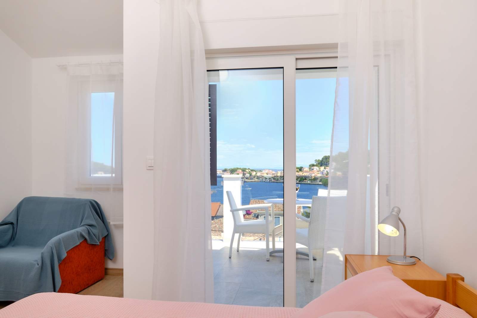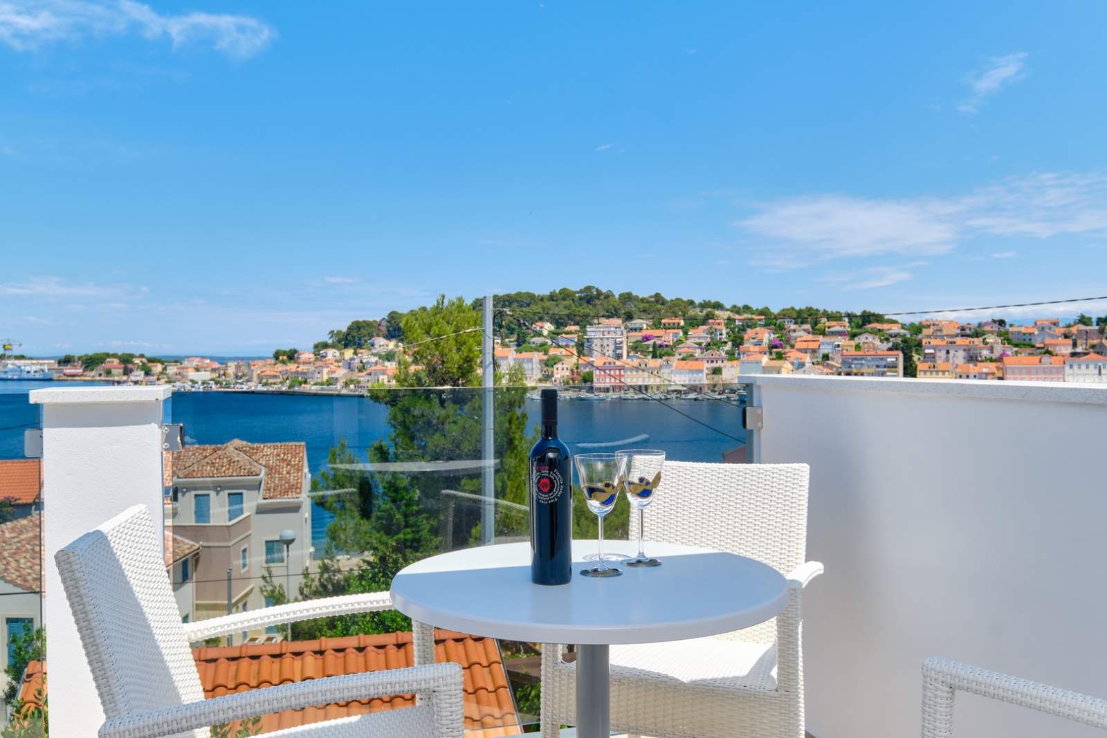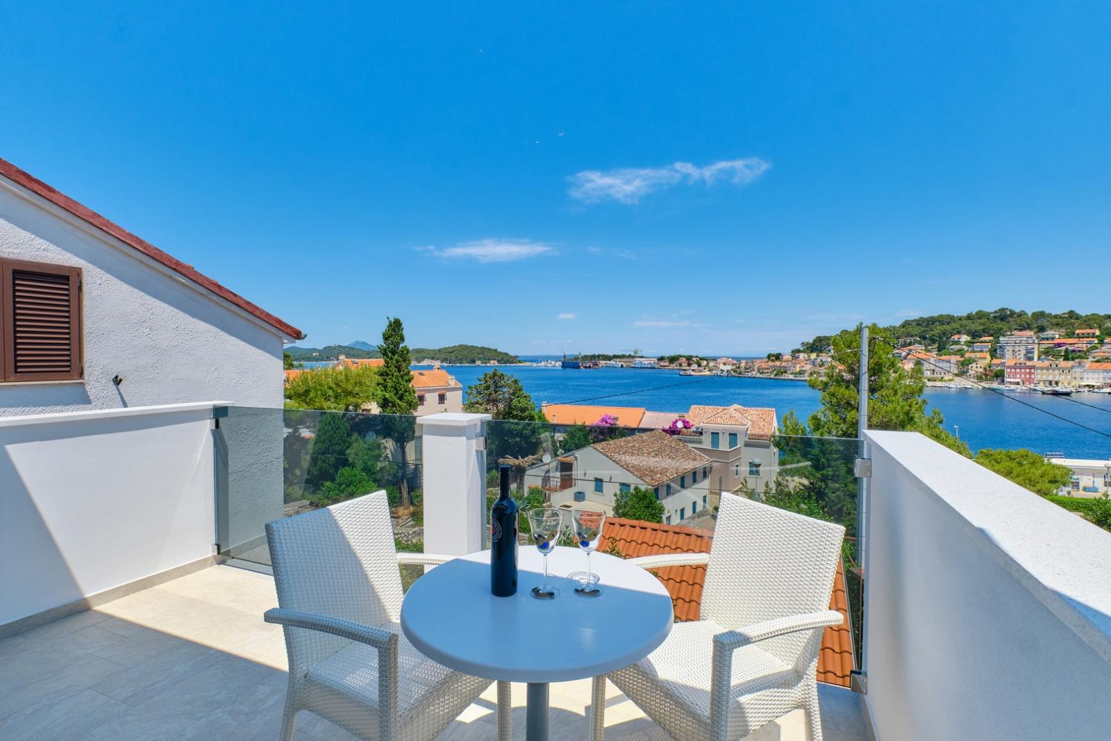 Apartma Gemma 1 za 3 osebe. Balkon s pogledom na morje in pristanišče, zasebno parkirišče. Uživajte v oddihu v Malem Lošinju.