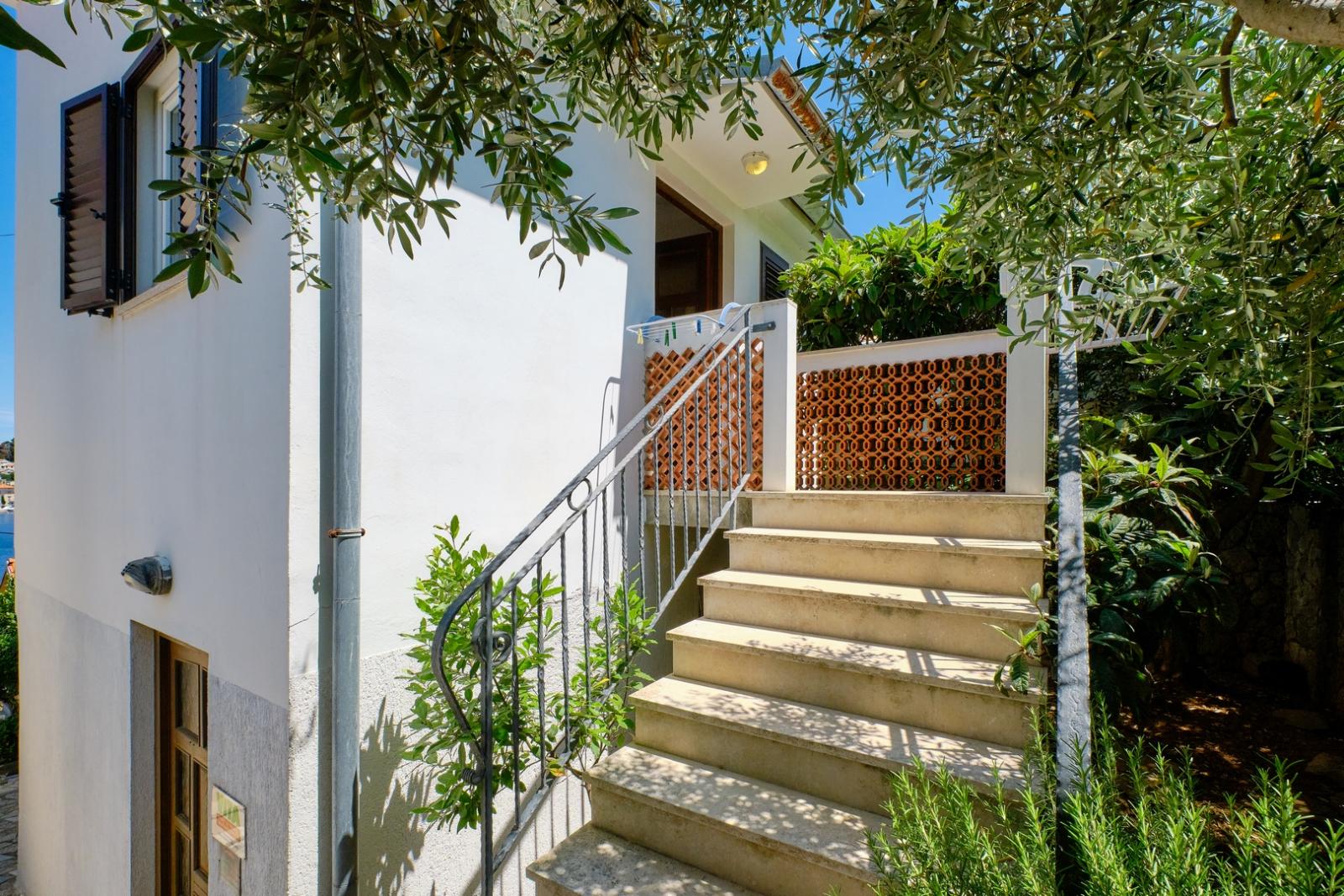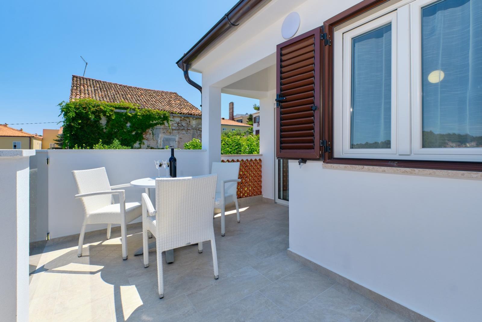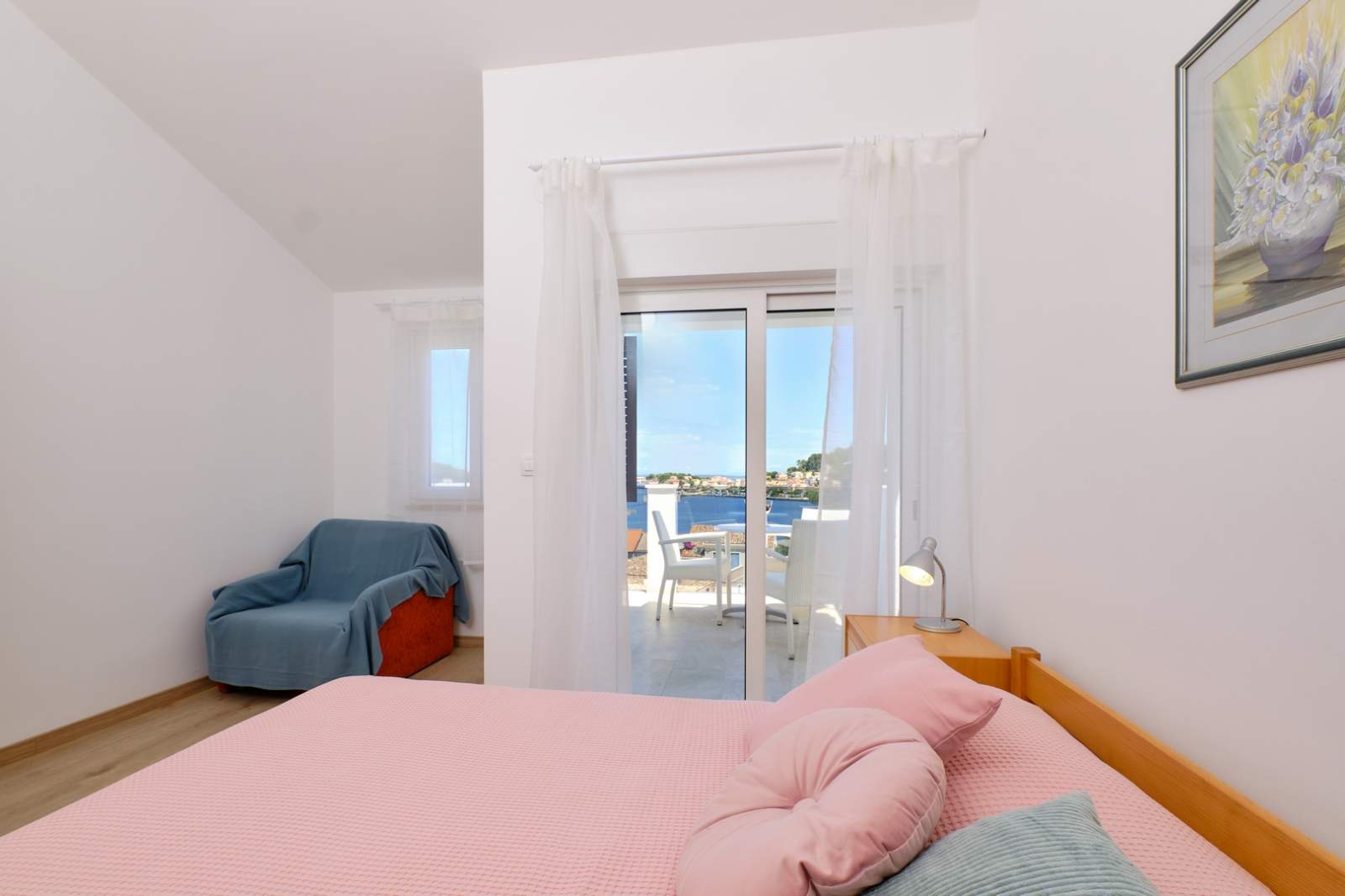 Apartma Gemma 1 za 3 osebe. Balkon s pogledom na morje in pristanišče, zasebno parkirišče. Uživajte v oddihu v Malem Lošinju.