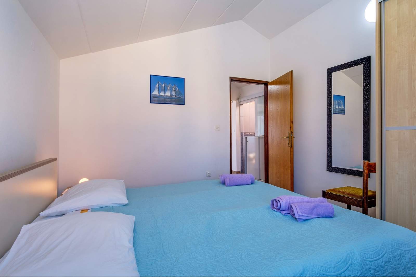 Apartma Marta 3, 180m od morja v Malem Lošinju, idealen za družine ali prijatelje. Dve spalnici, terasa z delnim pogledom na morje.
