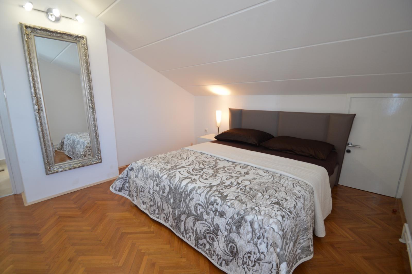 Apartma Milica 2, ki se nahaja v podstrešju, je popoln za družine ali pare, ki iščejo udoben počitek v bližini morja. Apartma vsebuje dve spalnici z udobnimi zakonskimi posteljami, kuhinjo z jedilnico in udobno pohištvo visoke kakovosti. Kuhinja je opremljena z indukcijsko ploščo, pečico, hladilnikom, grelnikom vode in aparat za kavo, kar omogoča prijeten bivanje. Apartma je klimatiziran, kar zagotavlja udobje skozi vse leto.