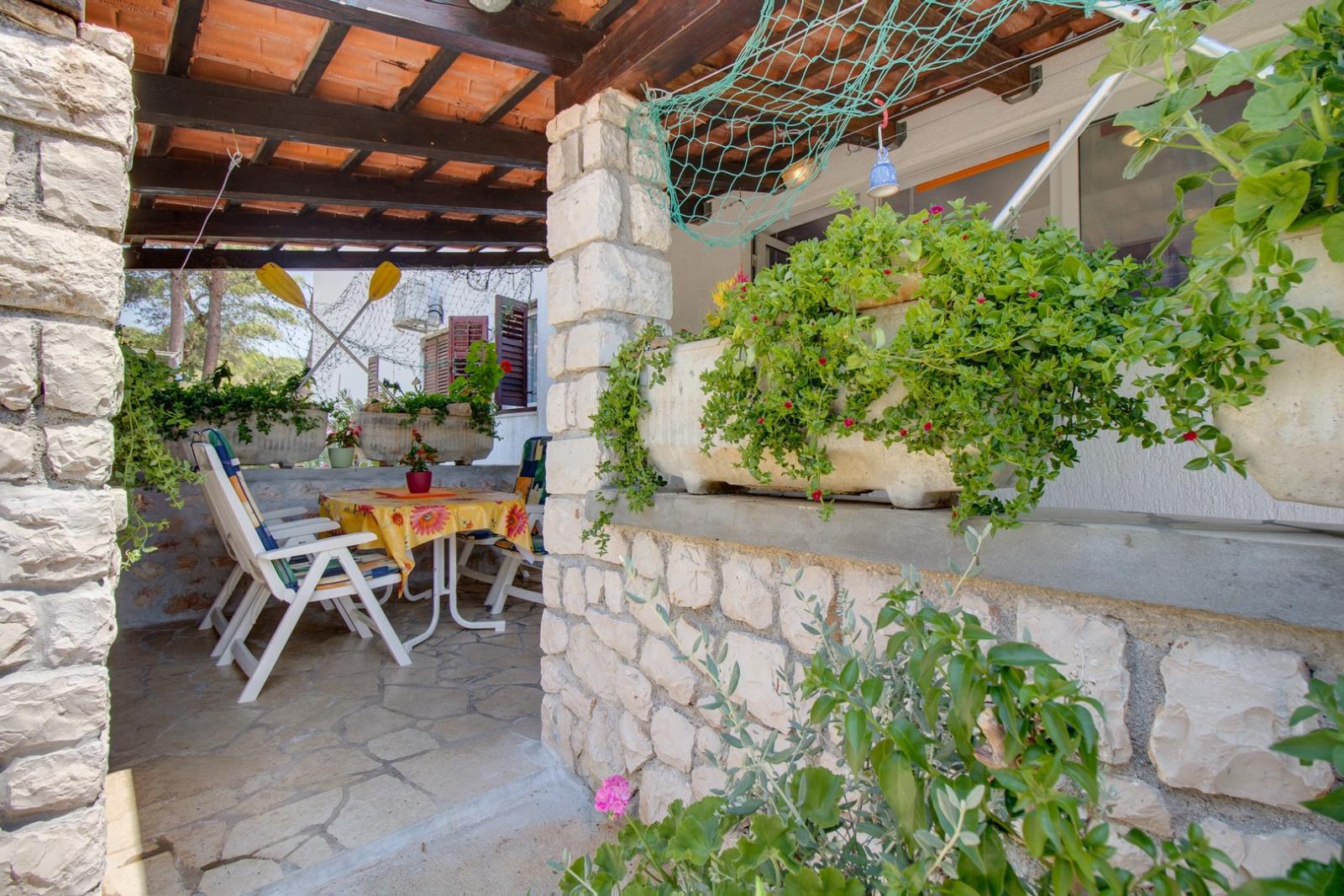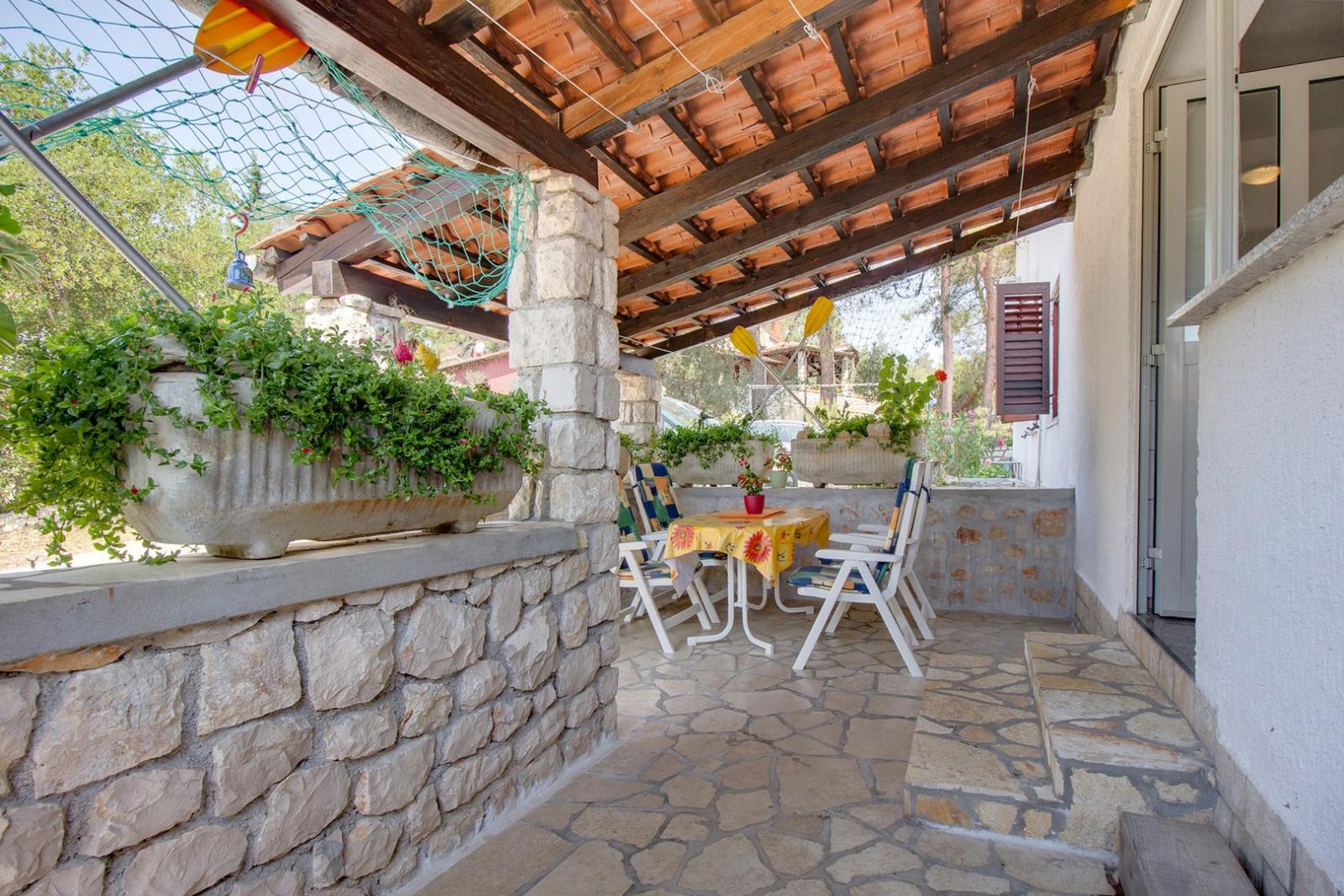 Uživajte v dvosobnem apartmaju Simpatico, 7 km od Malega Lošinja, s privatno teraso in parkiriščem. Samo nekaj korakov do plaže!